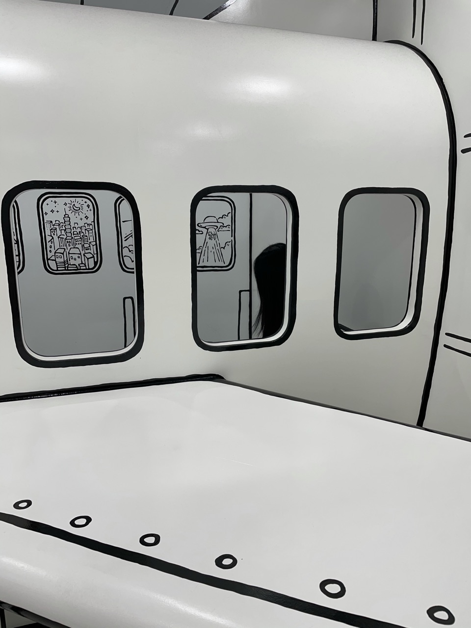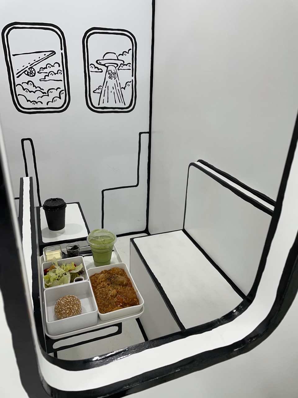 飛行機の「ぶぉーーん」という音を聞きながら座っていると、本当に機内にいるみたいでした。