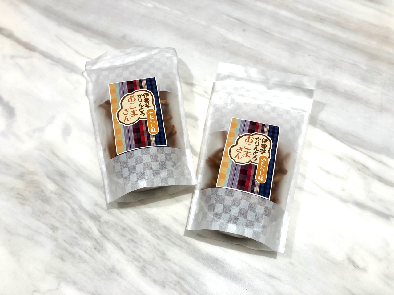 1856年創業の老舗醤油屋さんが造るかりんとう、みたらし味です。三重県多気郡で育てられた伝統野菜伊勢芋の皮を丁寧に処理し粉末にして生地に配合したとのこと。そのためか、甘味はけっこうあるのですが、後に残らない上品な甘さで、ヘルシーな感じがします。芋けんぴのように割とハード系ではあるのですが、それよりも細身なので、ポリポリッと軽い食感も楽しめます。甘いもの苦手な私でも、あと一つ、あと一つと、食べる手が止まりませんでした。こんなに美味しいかりんとうに出合ったのは、初めてかも♡と思うほど美味しくて、一袋あっという間に空けていました^^