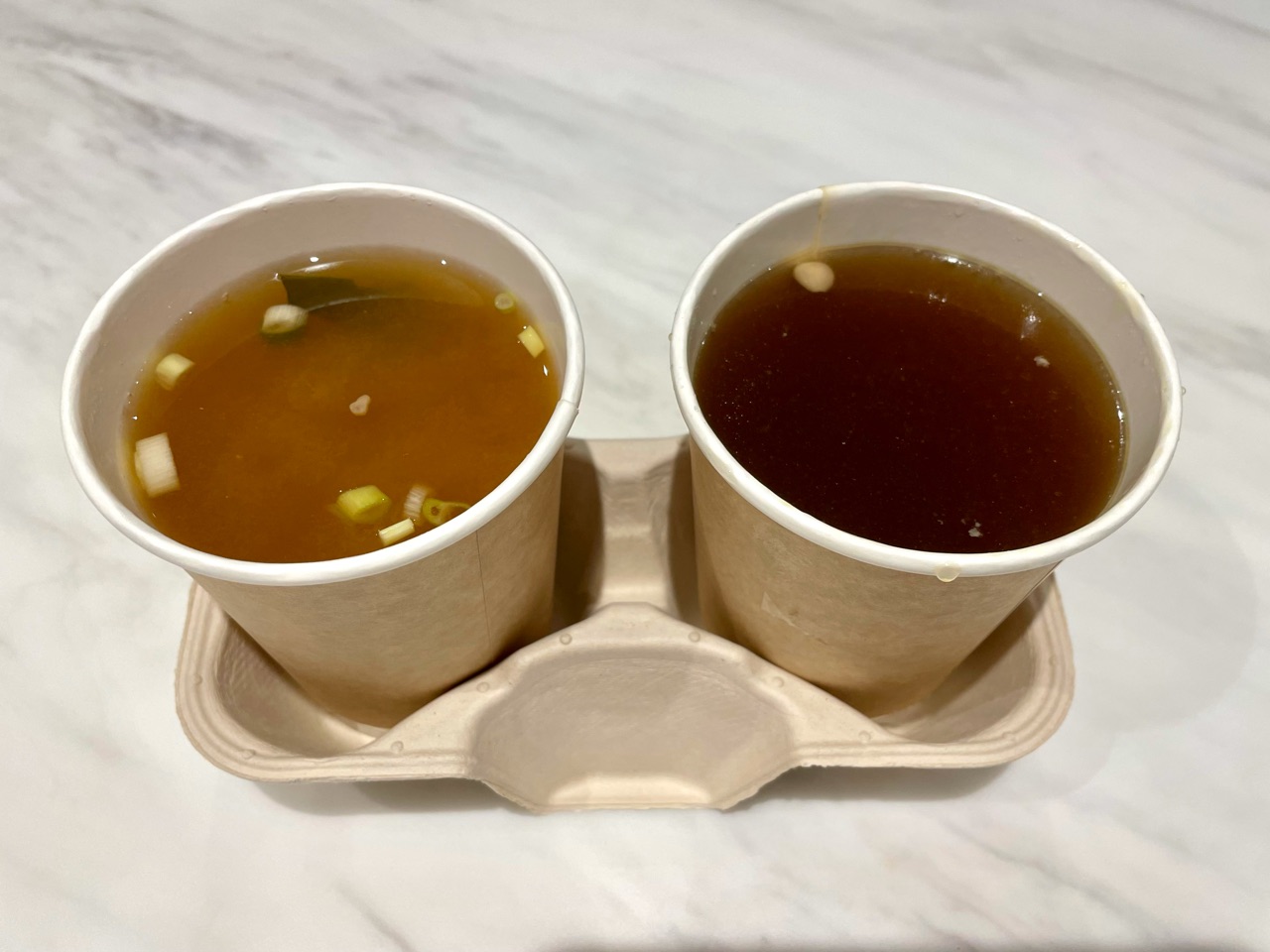 ドリンクカップには、お味噌汁とテールスープが入っています。