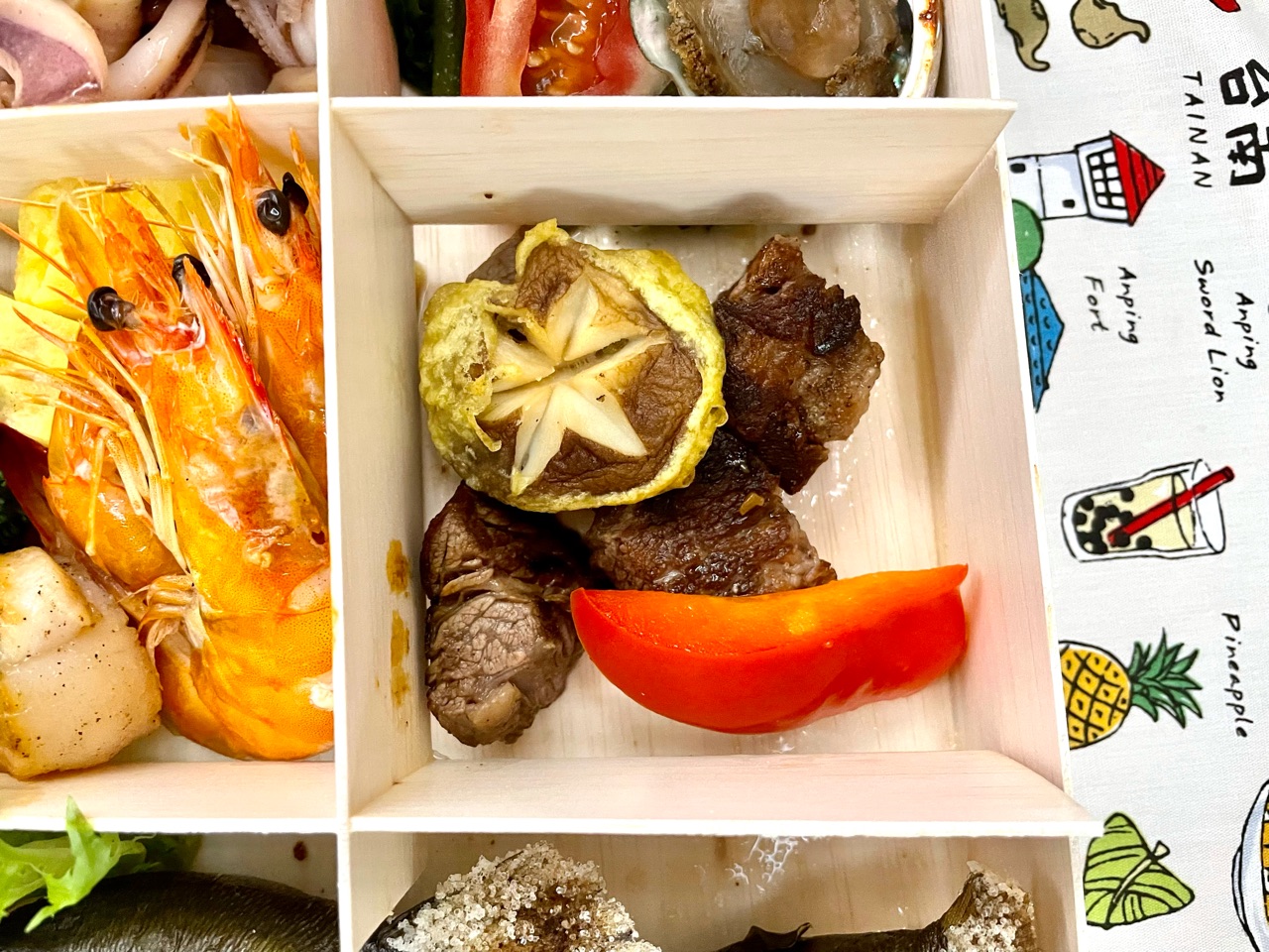 盛り付けが雑なのが台湾らしいな、と思いますが、色々な種類を目と舌で味わえるのは、楽しいです。