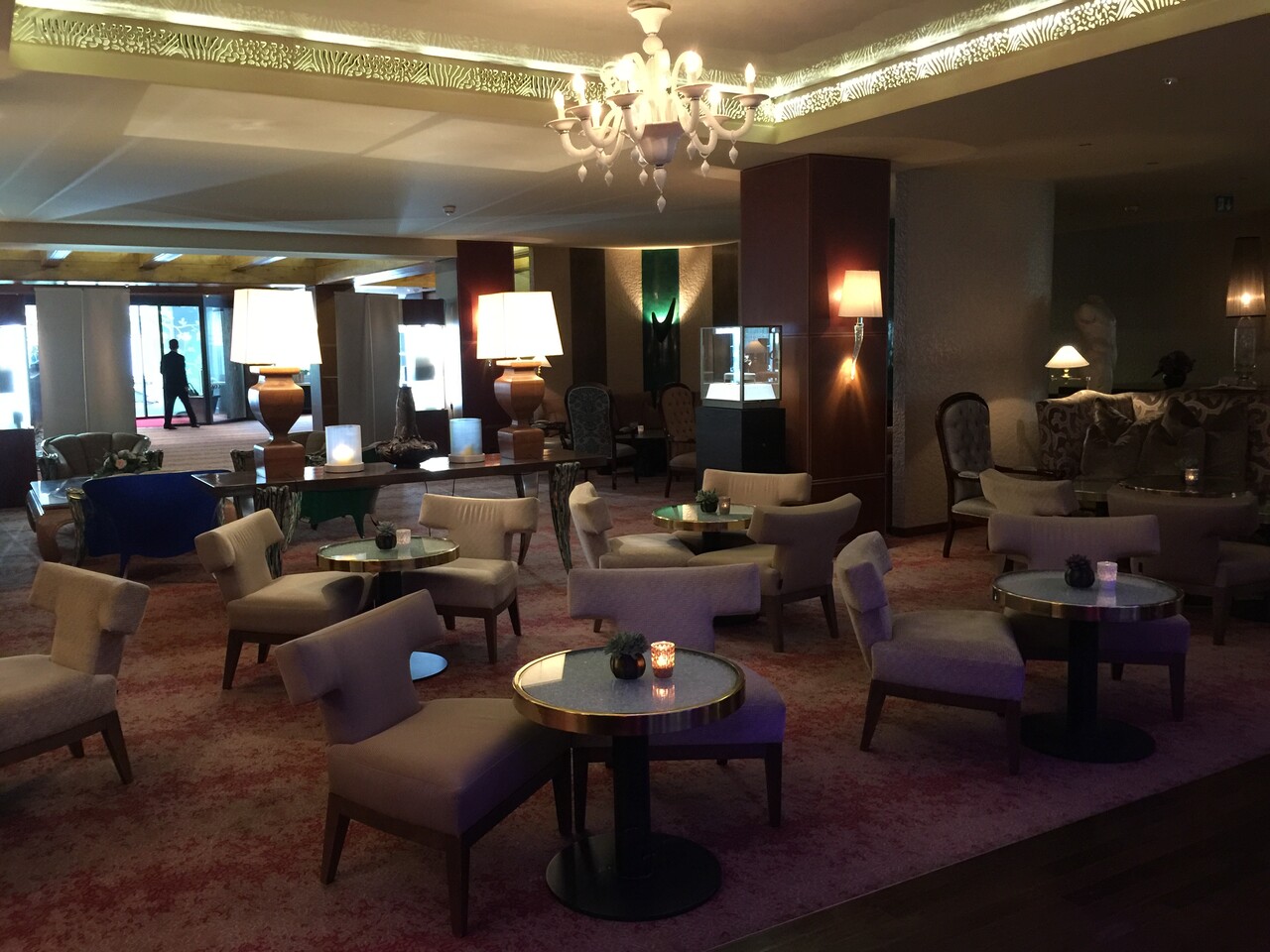 ホテルのエントランス間の前には、ラウンジがあります。 奥にミシュラン一つ星のレストラン→スイス ミシュラン一つ星「La Vetta」でディナー と、朝食もいただけるオールデイダイニング→グルテンフリー&ラクトースフリーのパンケーキ チューゲングランドホテルの朝食 があるのですが、それ以外は、この空間全てがラウンジになっているので、かなり広いです。
