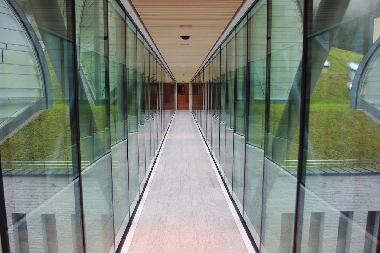 スパは、ガラス張りの廊下でホテルに直結しています。