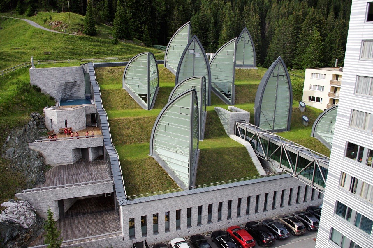 このホテルは、何といってもスパが素晴らしいのですが、スパは、総面積5000 ㎡の4 階建てになっていて、山にそのまま組み込まれているというユニークな造り。