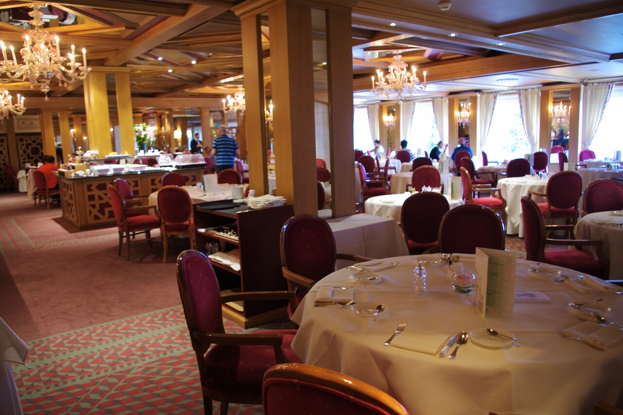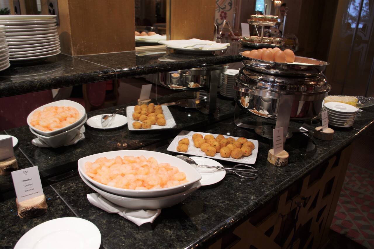 いかにもヨーロッパのホテルの朝食会場という佇まいで、優雅な雰囲気ムンムン。