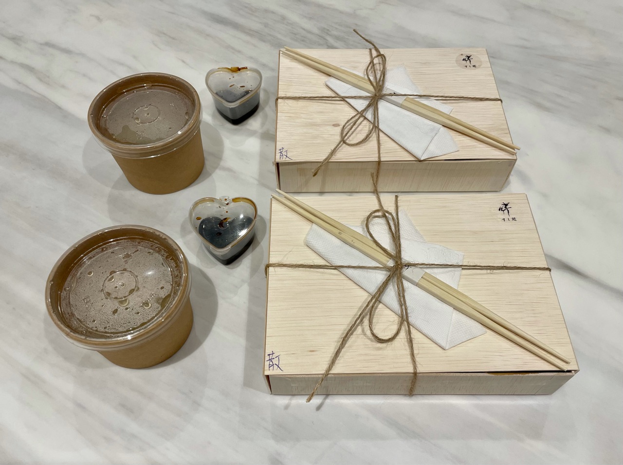 お醤油は可愛いハート型の容器に入っていました。 星のやグーグァンの日本酒とともにいただきました。
