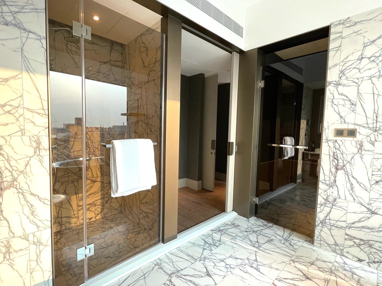 続いてバスルーム。ベッドルームと同じ方向で、ハーバービューです。こちらも高層階ならビューは良さそうです。