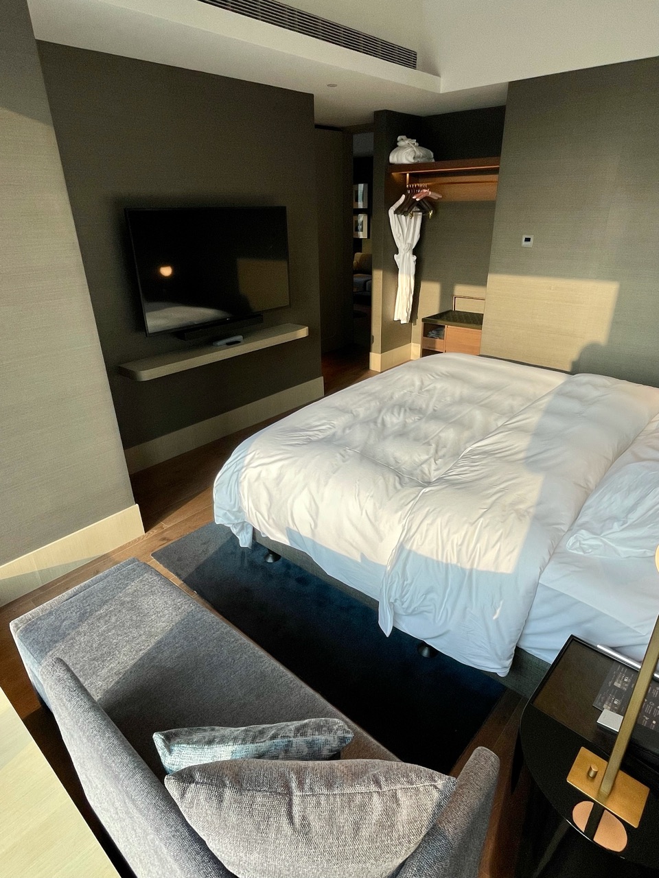 そういえば、予約時点で気になったのは、1キングプレミアム以外のお部屋は、クラブフロアのお部屋含め、36㎡しかないことです。台北のホテルでも、同レベルのホテルの場合、36㎡以上の広さはあると思いますので、少し意外でした。逆に1キングプレミアムの場合は、ハーバービューではないですが、でも広さは46㎡あります。
