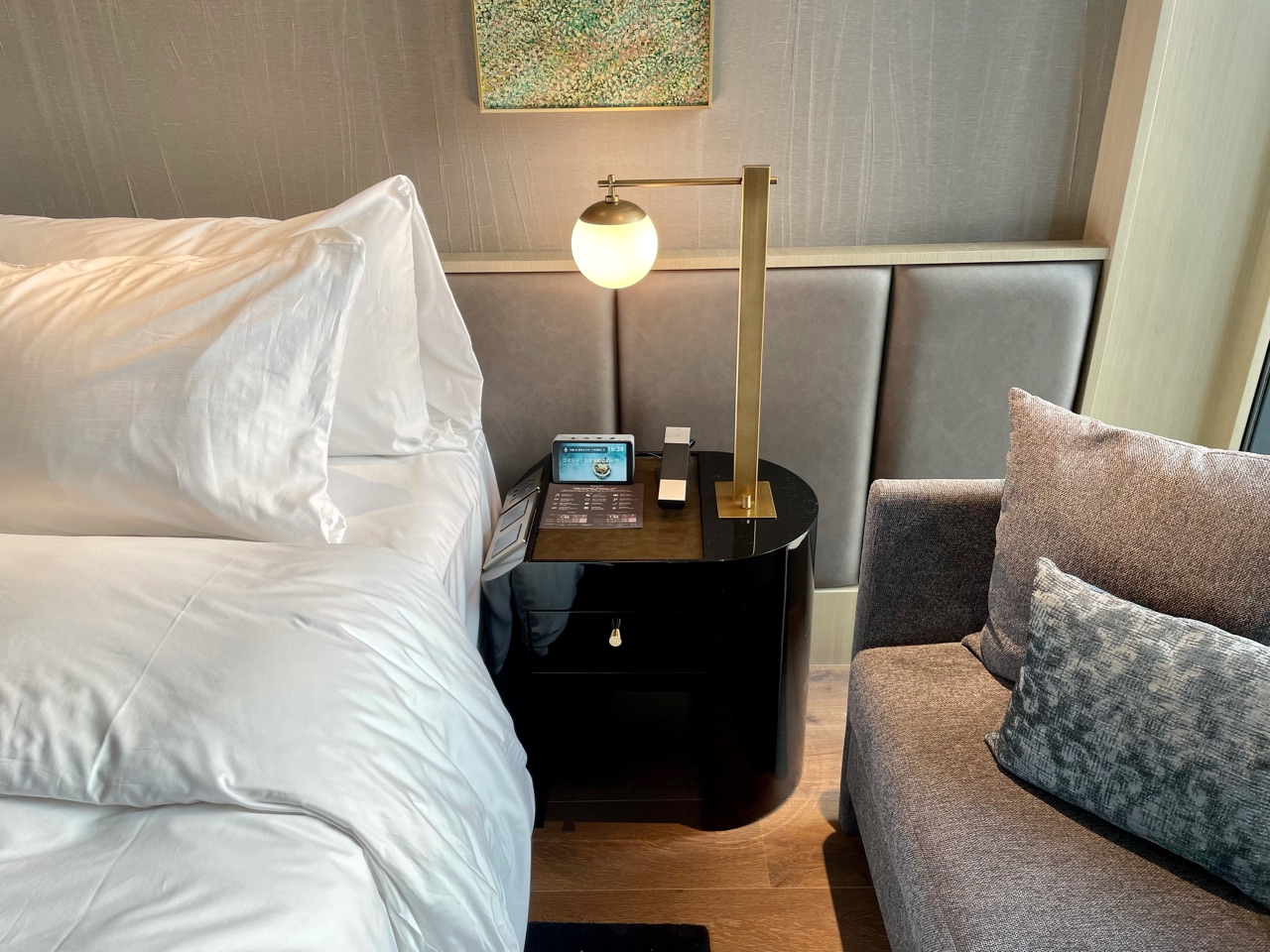 ベッドサイドのテーブルは非常に使い勝手がよかったです。さすが最新のホテルです。