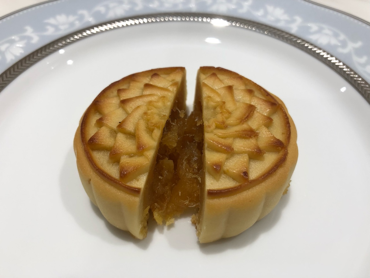 餡子が甘くないのと、外の皮がサクサクで一枚一枚がパリッとした食感で、とても好みでした。月餅を一度に一つ丸々食べたのは今回が初めてかも。