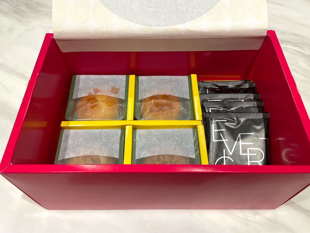 ↑すごく派手な袋で届いた月餅。パイナップルケーキで有名な犁記の若者向け?新しいブランドの’’犁茶品記’’と、台湾最大の免税店グループと’’everrich’’のコラボ商品だそうです。