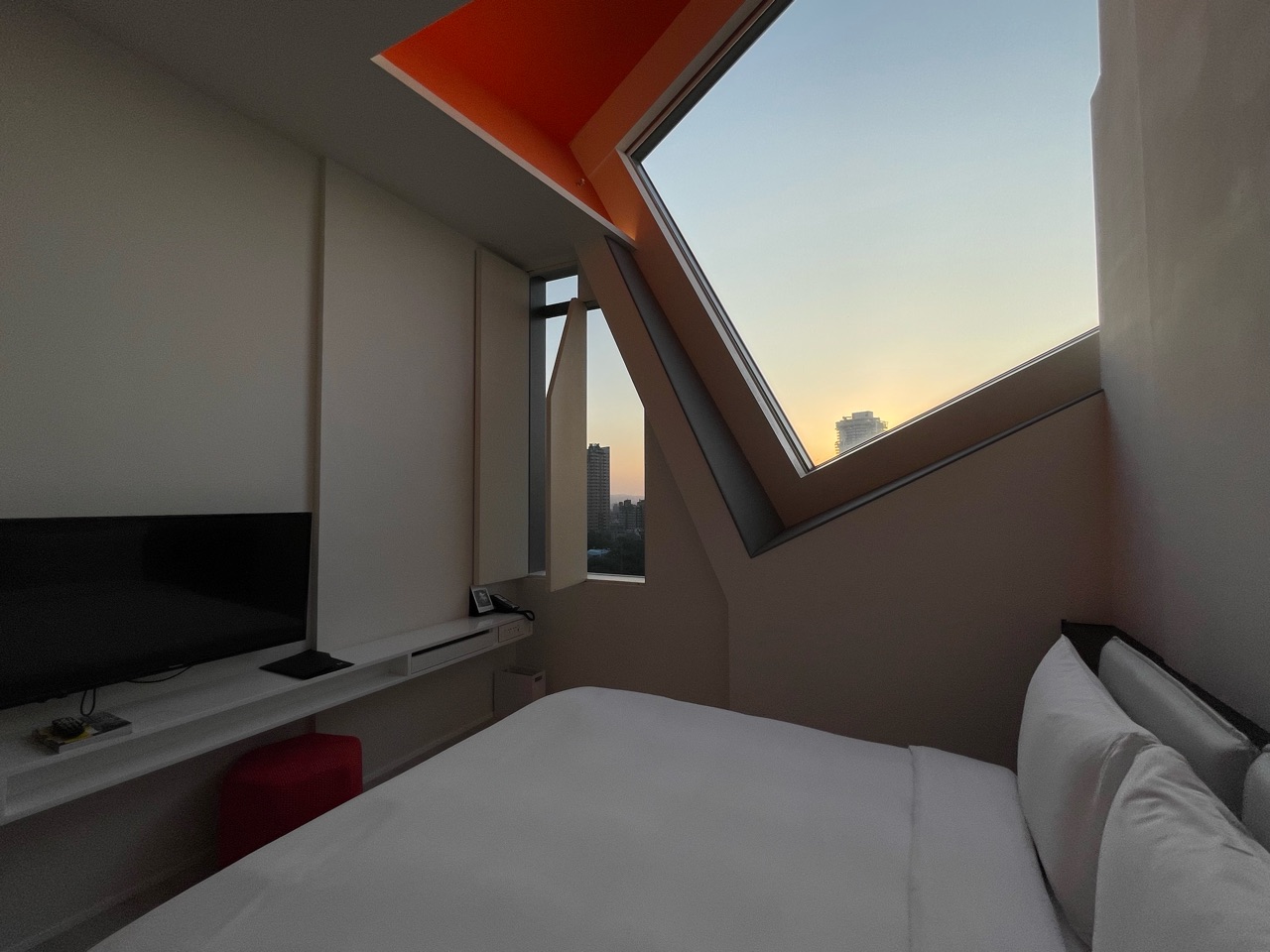 このタイプのお部屋は数が少なく人気のためか、お値段が若干お高めかなと思ったのですが、清潔感はありますし、確かにこういった窓があるお部屋はなかなかないので、一度は泊まってみても良いかもしれません:)