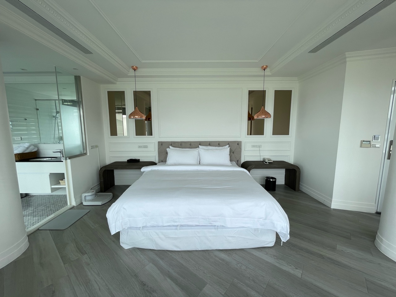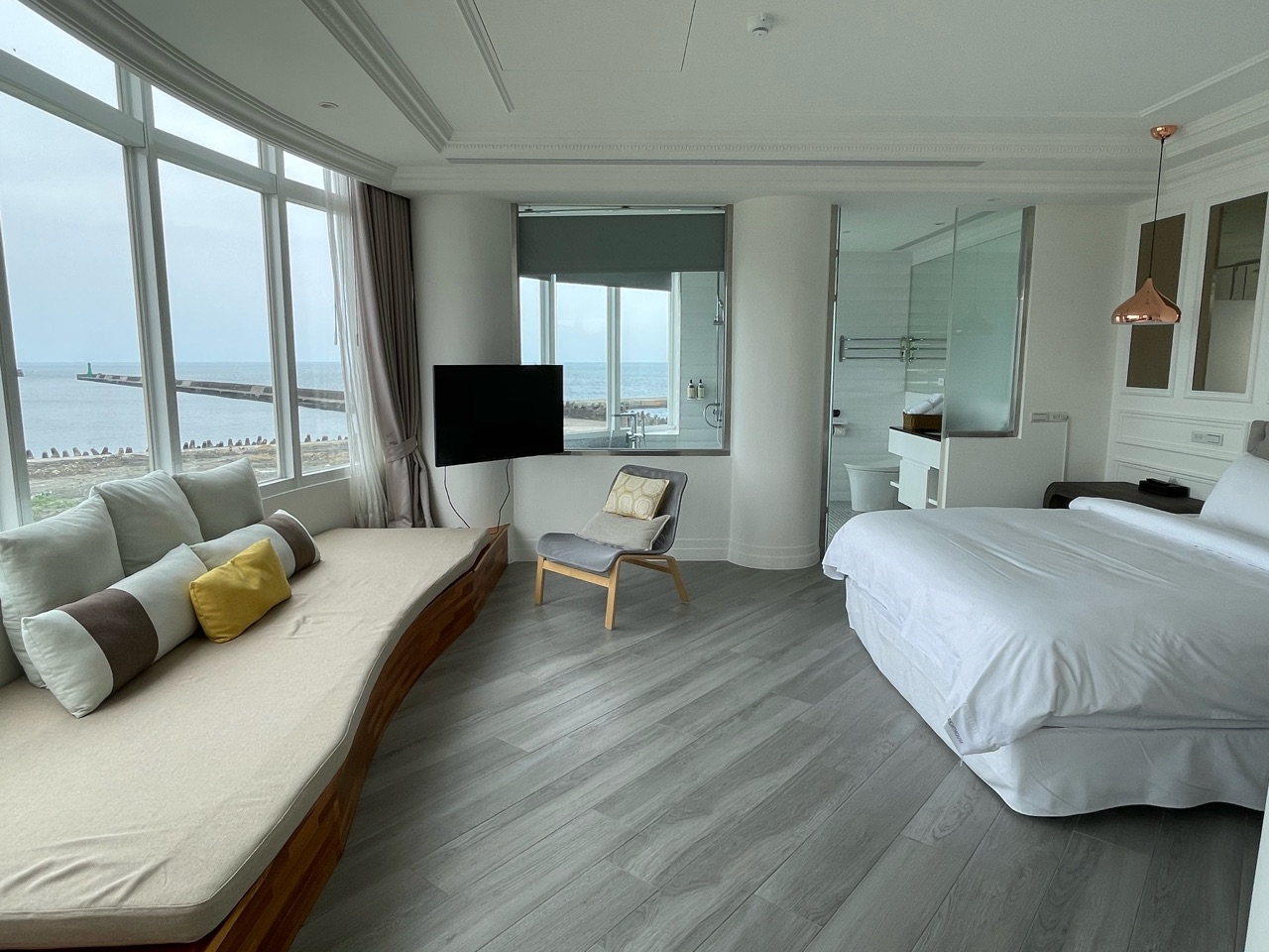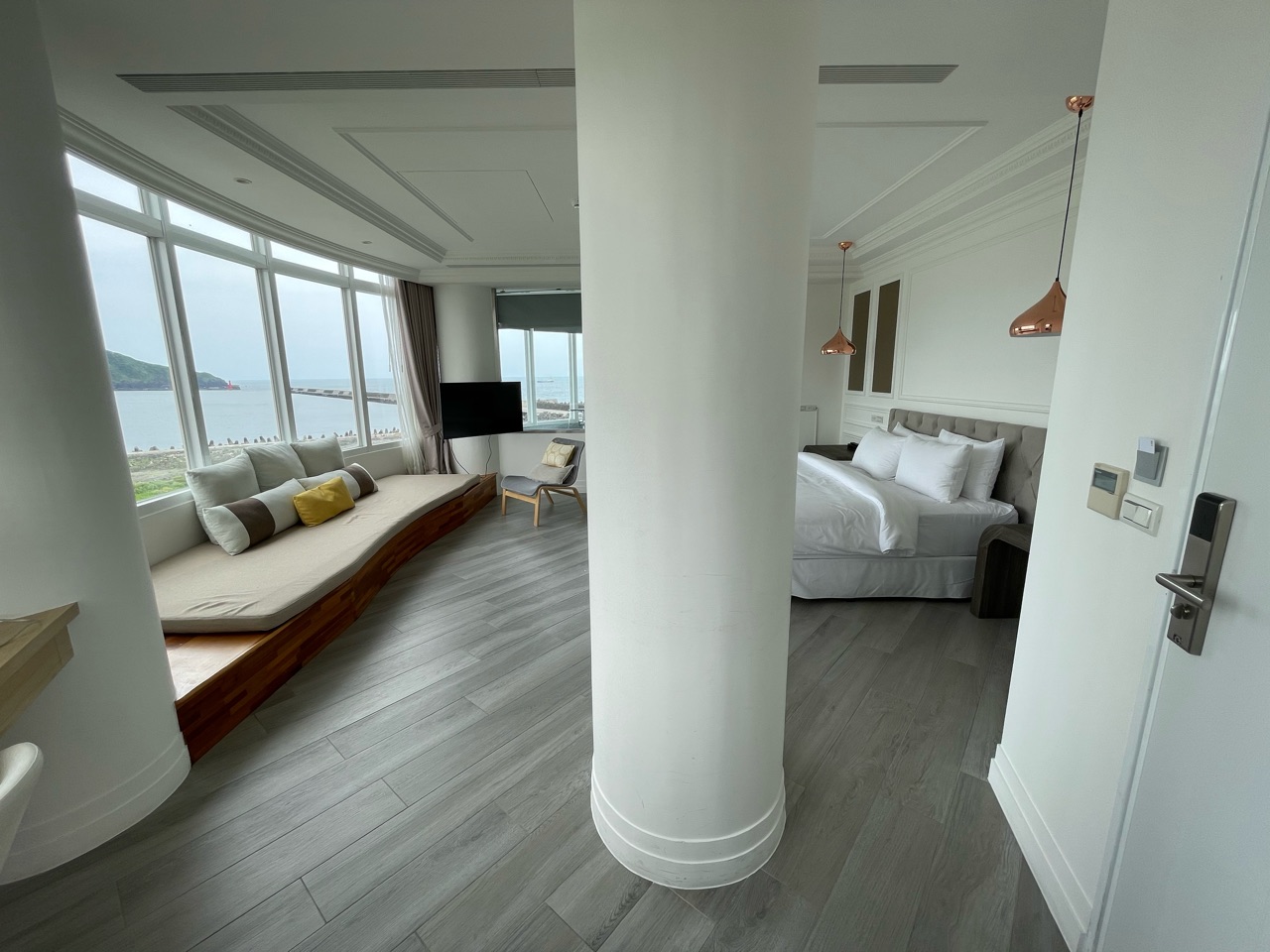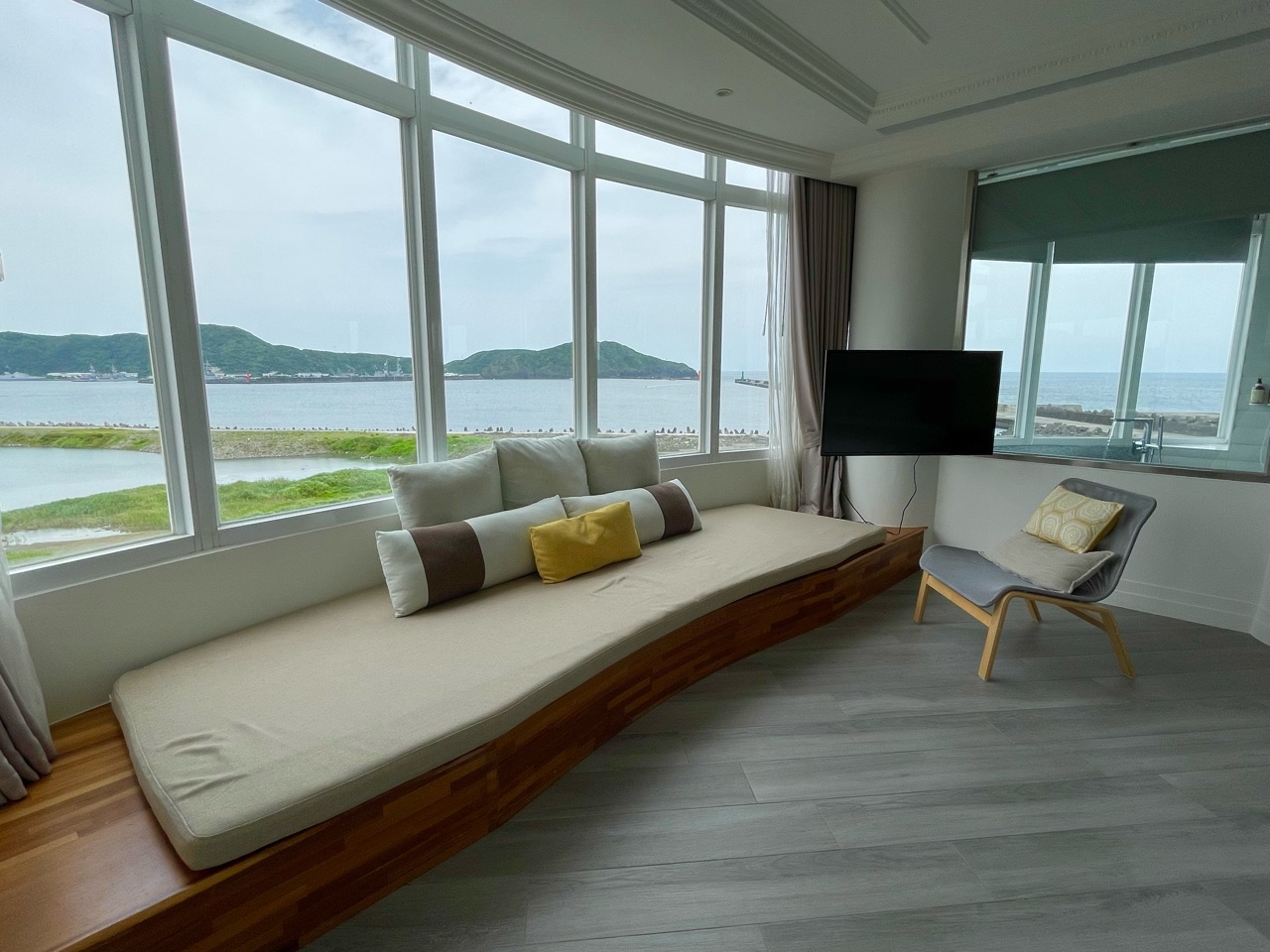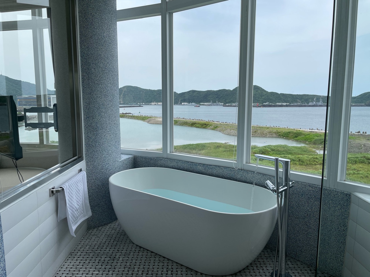 前回宿泊したお部屋は、海だけを一望できる「無敵海景」のプライベートテラス付きVIPルーム。今回は、「跨港海景雙人房」タイプのお部屋の最上階「VIP跨港海景501」です。これ、台湾あるあるなのですが、何でもかんでもVIPつけたがる。笑