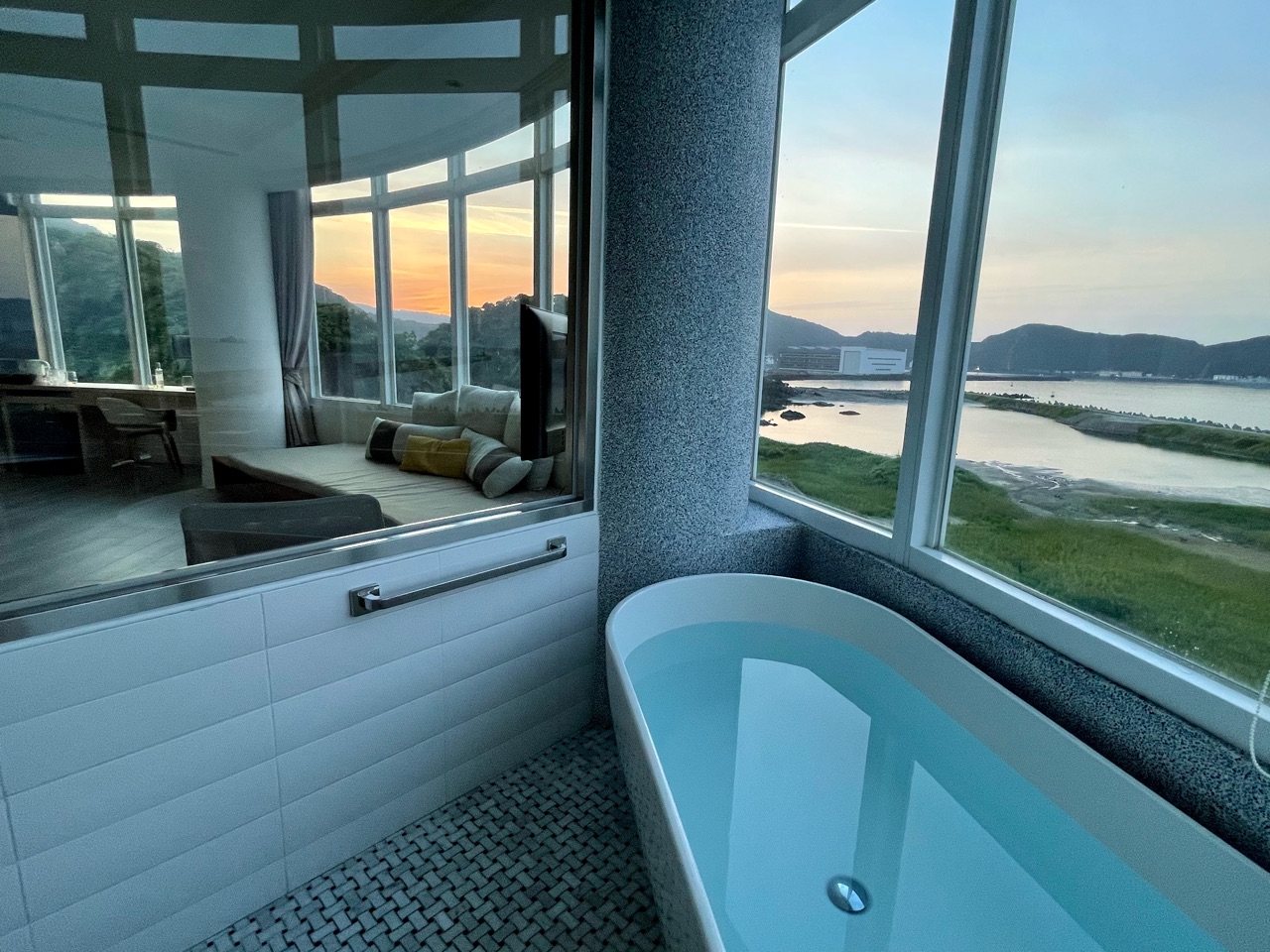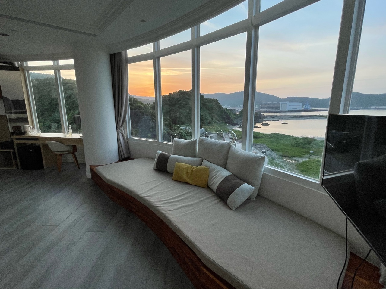 前回との比較ですが、海だけを眺めたいのであれば、「無敵海景」の方が完全なるオーシャンビューの景色を堪能できるかと思います。今回は、5階の「跨港海景」でしたが、5階でも十分に海と一体になるような景色を見渡せるので、5階の「無敵海景」が最強かも。ただ、子連れ旅には、前回私が滞在したテラスがあるお部屋がよさそうかなと思いました。