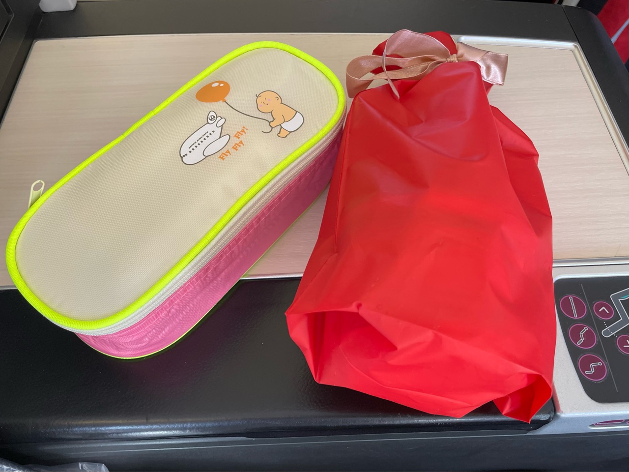 「プーちゃん様の機内食とおもちゃをお渡しさせていただきます」って。0歳児にも様付けなのですね〜