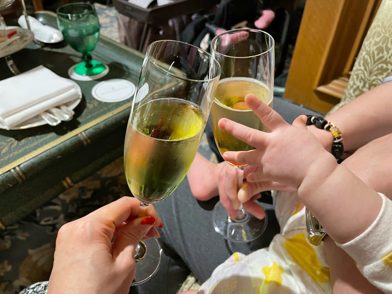 乾杯は、オーロラシャンパンカクテル、ノンアルバージョンで。