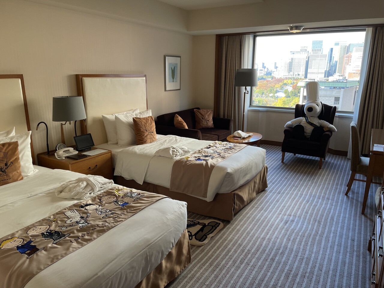 お部屋内には、結構なSNOOPYが溢れているのですが、それでも、いかにもキャラクタールームというような子供っぽくなりすぎず、品のある落ち着いたお部屋に仕上がっているのは、さすが帝国ホテル様です。