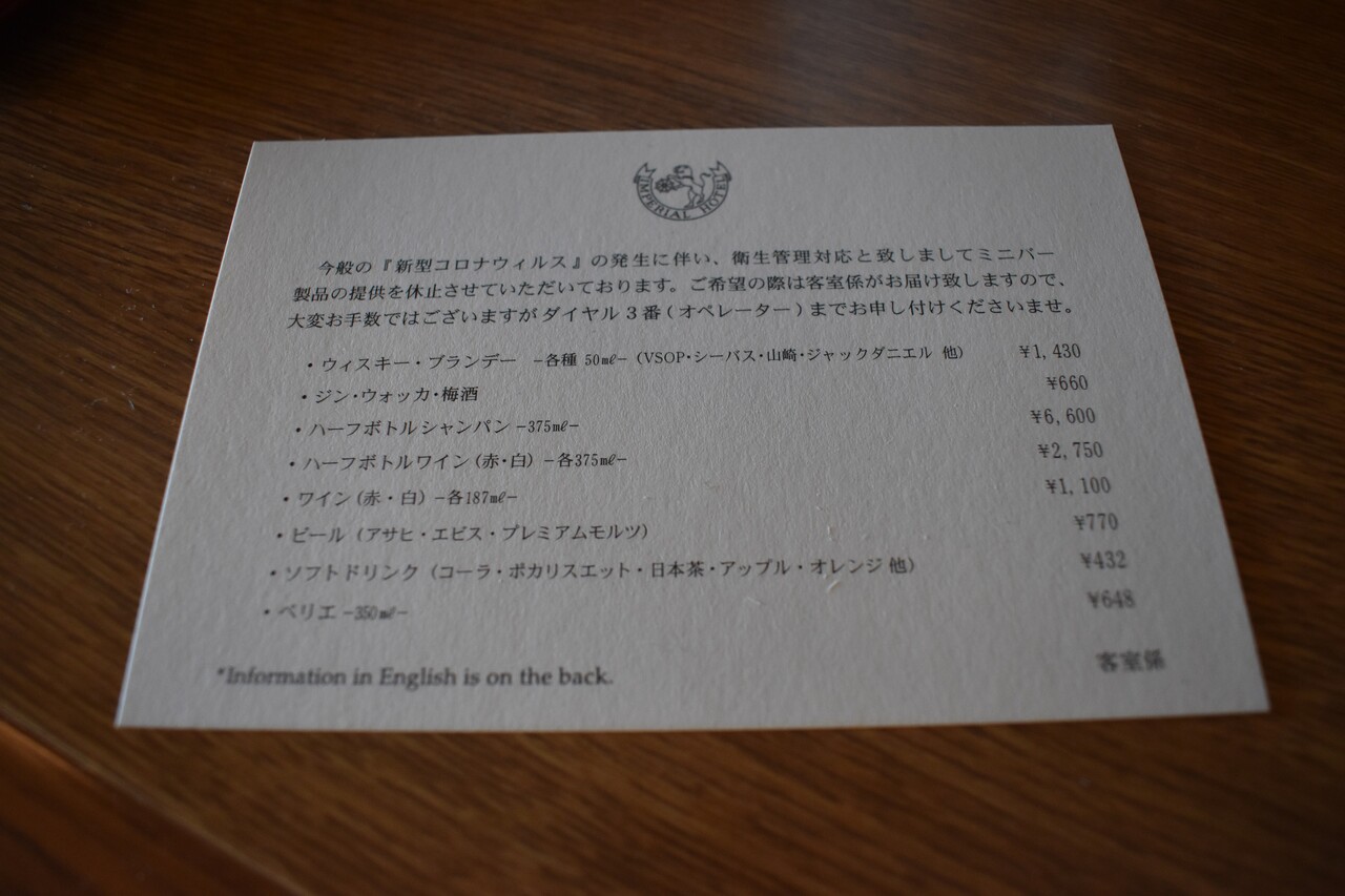 先日の日本滞在時、帝国ホテルに宿泊しました。