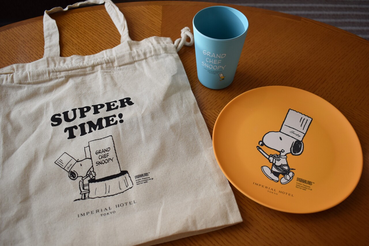 グラン シェフ スヌーピーの宿泊プランで滞在するといただけるお土産。 お部屋にあるスヌーピーグッズと共に、こちらも非売品。※お部屋にあるスヌーピーグッズは、一部(マグカップ)販売されているものもあるそうです。