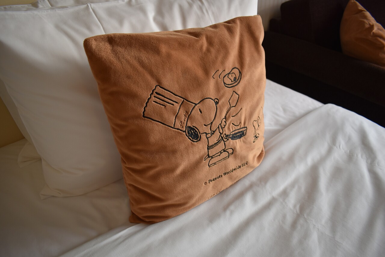 というわけで、お部屋では、このように、料理長スヌーピーという大きなぬいぐるみが、お迎えしてくれるのでした。