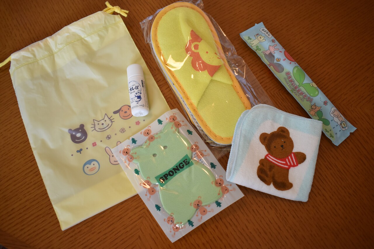 ベビ用バスアメニティ。スリッパや歯ブラシまであるのですね。 これを使えるようになる日がいつかくるのかと考えただけで涙出そう。親バカ