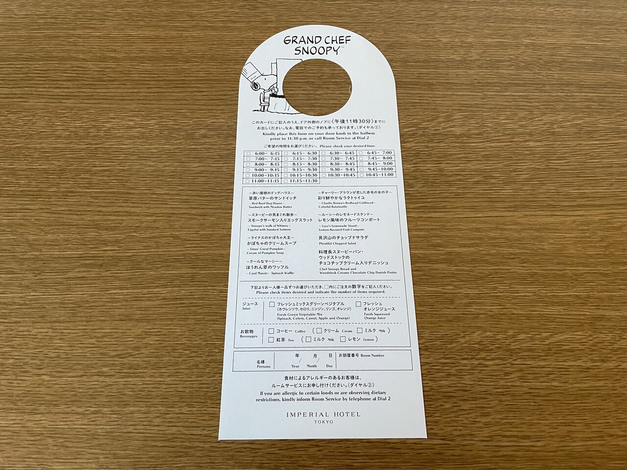 え?なぜにスヌーピー?ということなのですが、今回は、帝国ホテルのオリジナルキャラクター「料理長スヌーピー」のグッズに囲まれて過ごすことができる「グラン シェフ スヌーピー」という宿泊プランでの滞在なのでした。