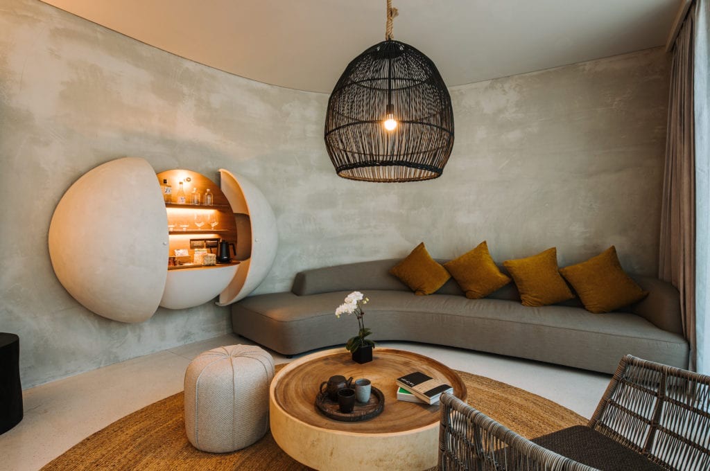 こちらは、ホテルのHPからお借りした画像なのですが、とにかくこの卵型のミニバーがかわいらしくて、私も‘’開け、ゴマ‘’をしてみたいなぁと。