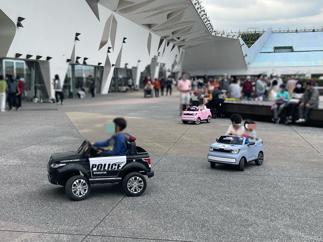 ゴーカートって、テーマパークや遊園地の専用コーナーにあるとばかり思っていたので、お散歩していたり、シャボン玉遊びをしていたり、ダンスしていたり、ピクニック?している方がいる中に