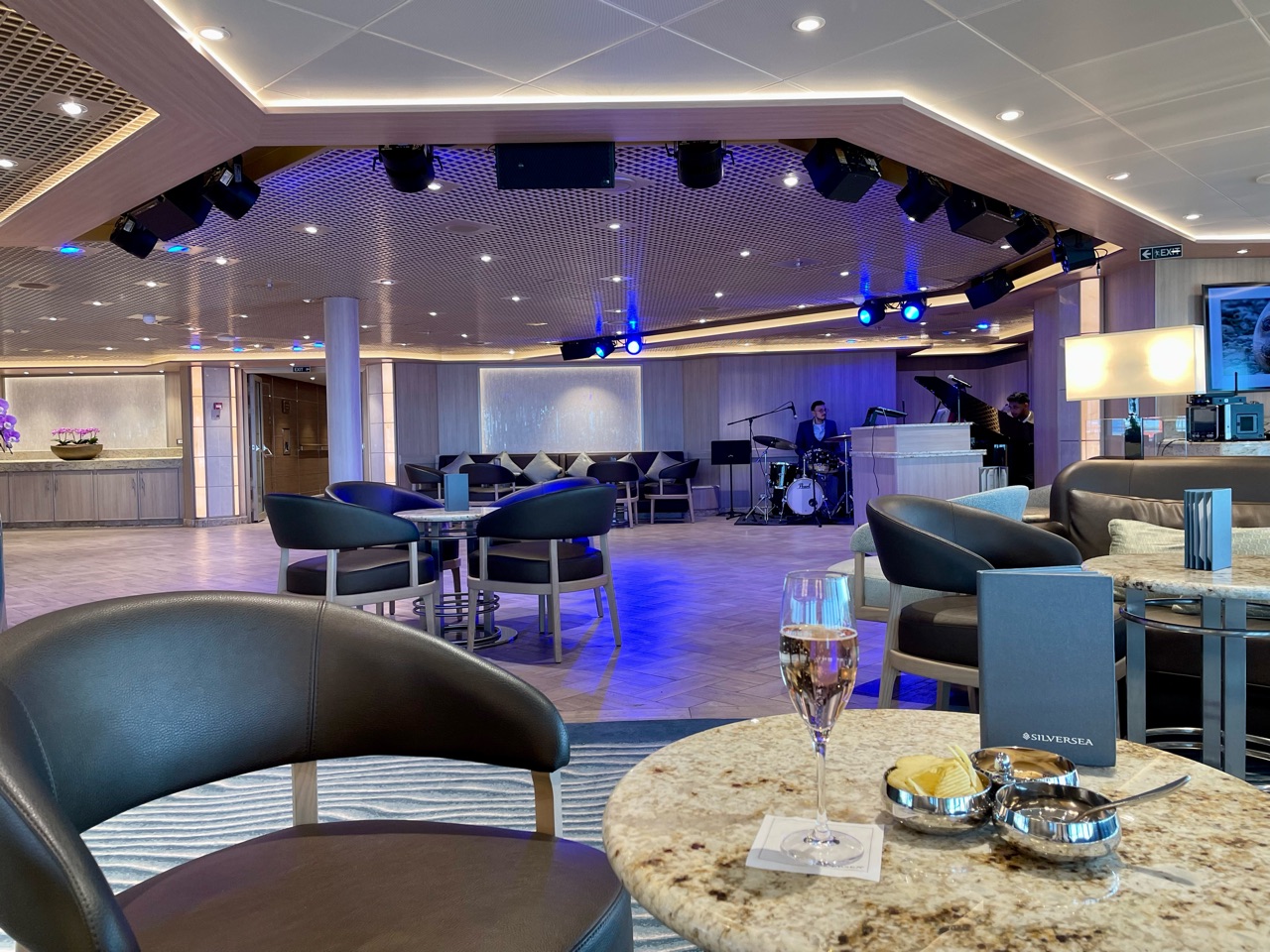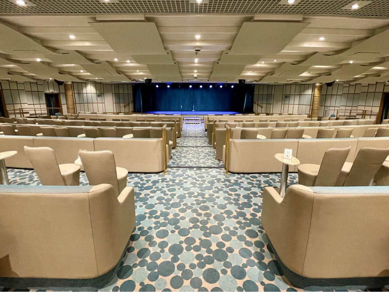 ショーラウンジであるヴェネチアンラウンジでは、講演、コンサート、映画鑑賞など、毎日何かしらのイベントが開催されます。