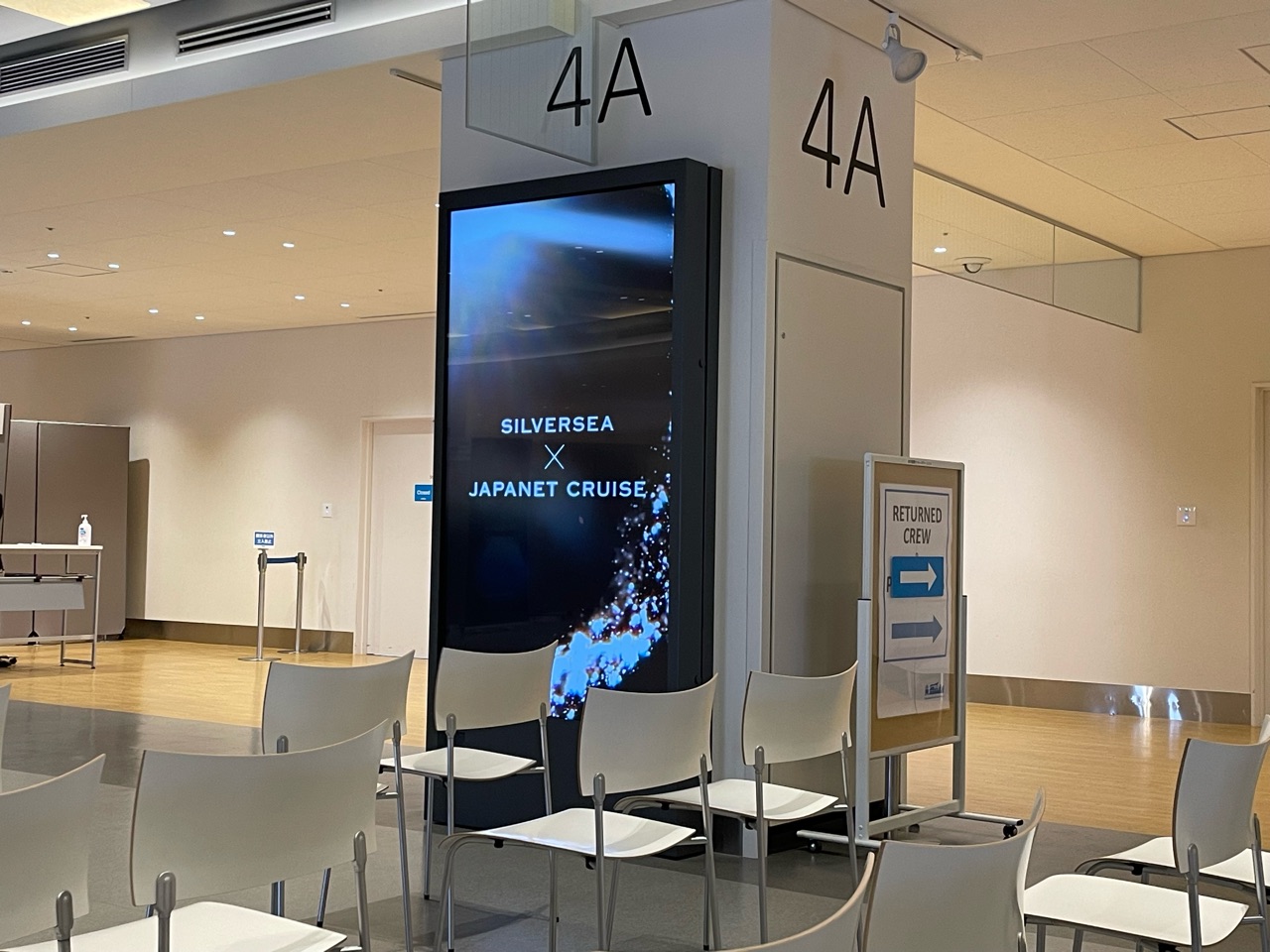 乗船説明会もこちらで行われましたが、出国審査、入国審査もここで行われたことには驚きました。日本発着のクルーズ船の場合は、船内で行われるものなのか、もしくは、今回のシルバーシーが特別なのか。。またそちらについては後日改めて。
