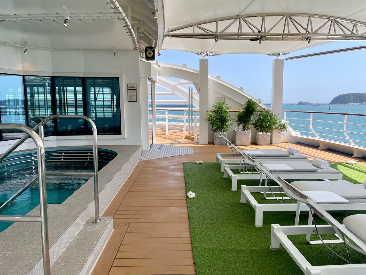海風に吹かれ、波の音を聞きながら、船上で入るジャグジー。最高です…!