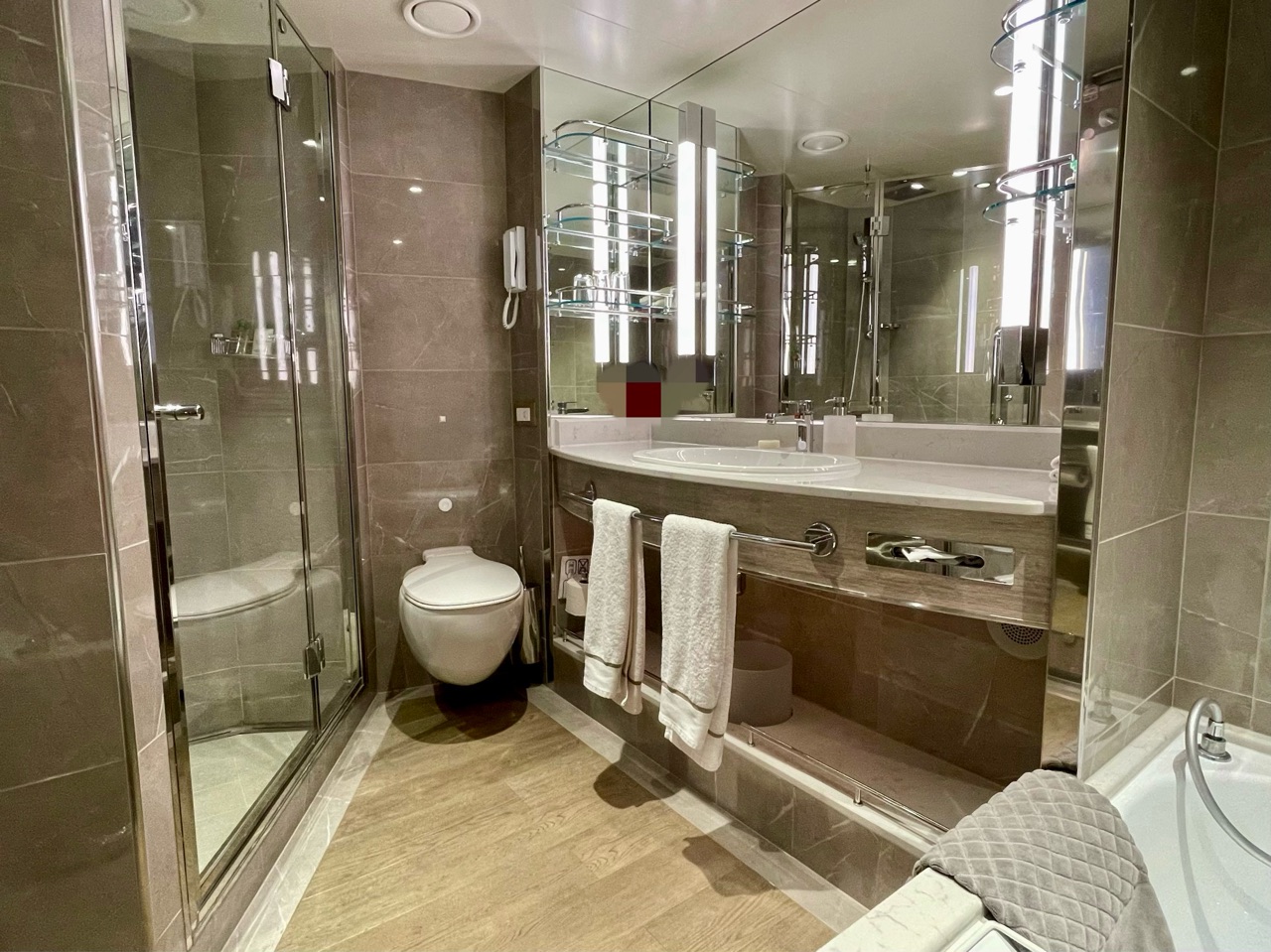船旅は、どうしても長期になりますから、バスタブ付きというのは日本人にとっては本当に有難い…。