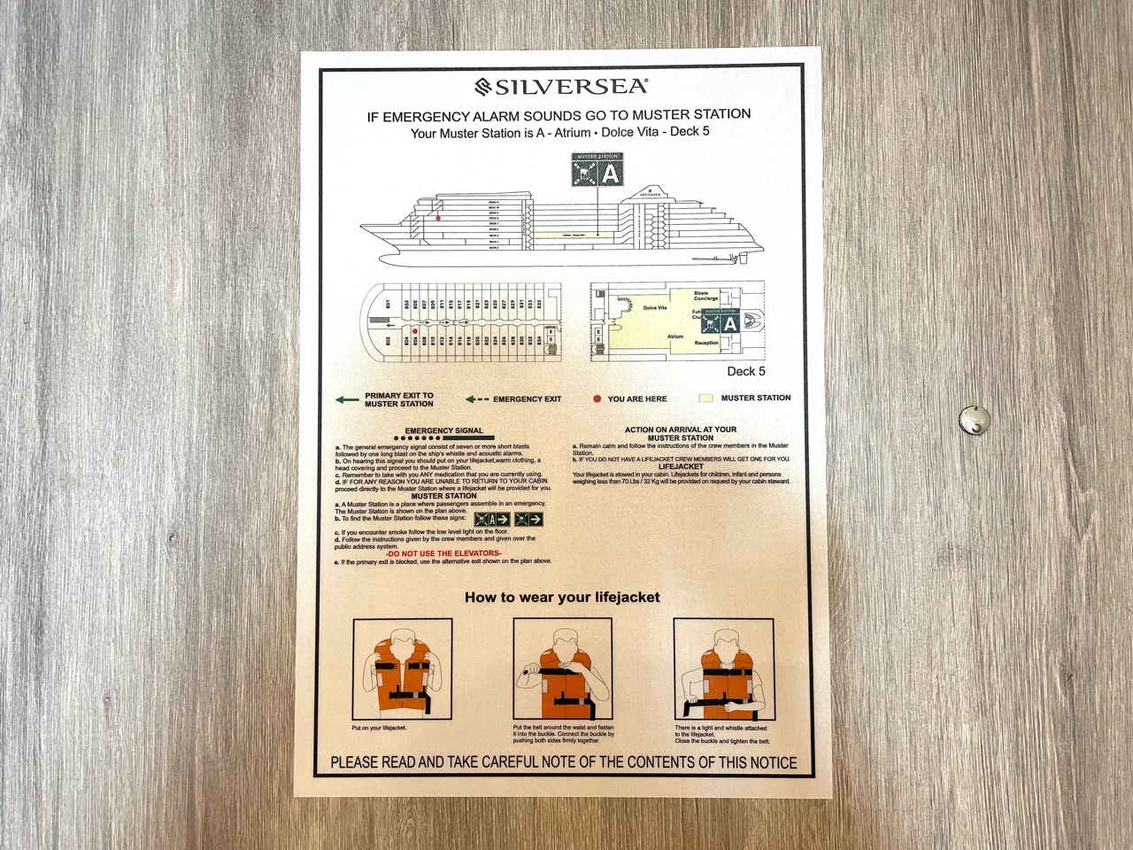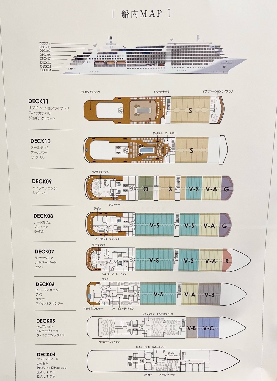 日本路線ですから当然それはそうなのかもしれませんが、海外発着ではまずありえないですし、日本発着であっても外国船ですから、それはやっぱり嬉しいサービスですよね。重要なことは全てここに書かれていて、クルーズ中は、いつも欠かさずに持参しているし、隅々まで読んでいるので、日本語版があるのは有難いです。(後日書きますが、それに加えて、館内放送、レストランのメニューなども全て日本語になっています)