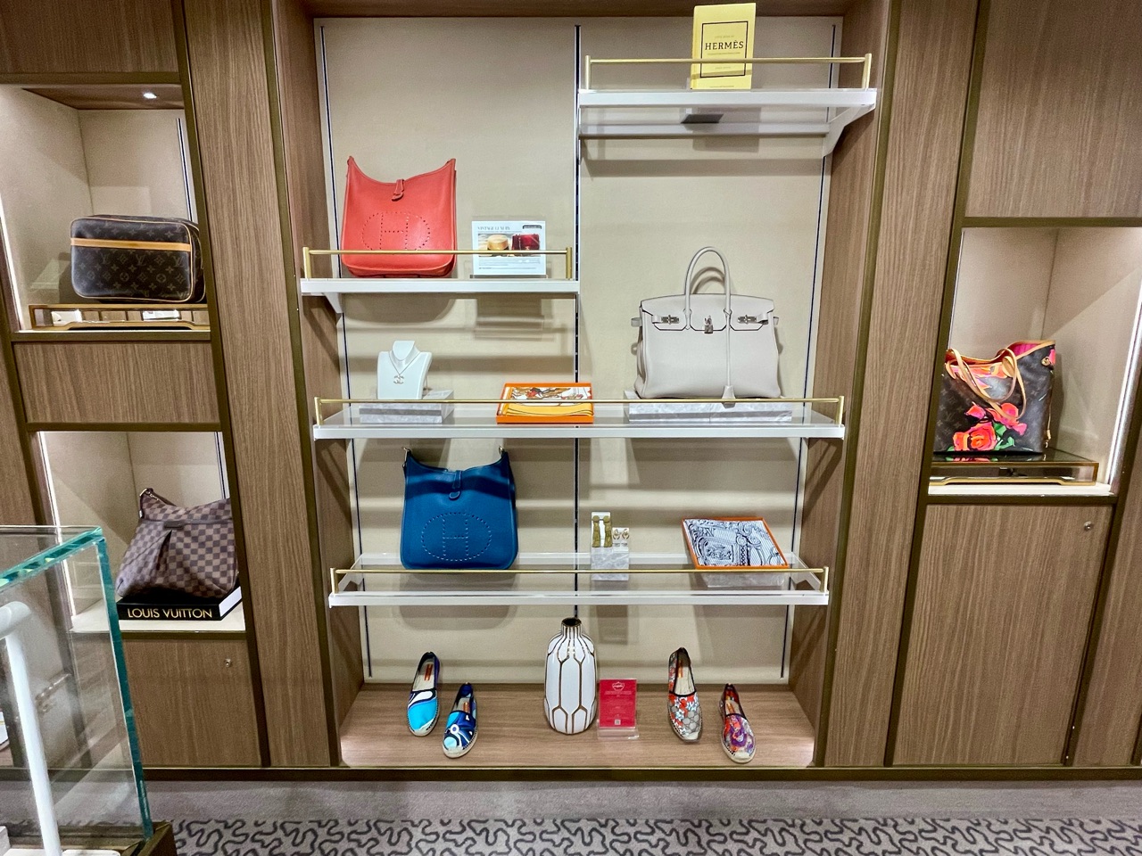 船内ブティックには、ヴィトン、シャネル、エルメスなどのヴィンテージ(シルバーシーが購入し、メンテナンスをしつつ販売していて、ほぼ新品と同じとのこと)も豊富に販売されていました。