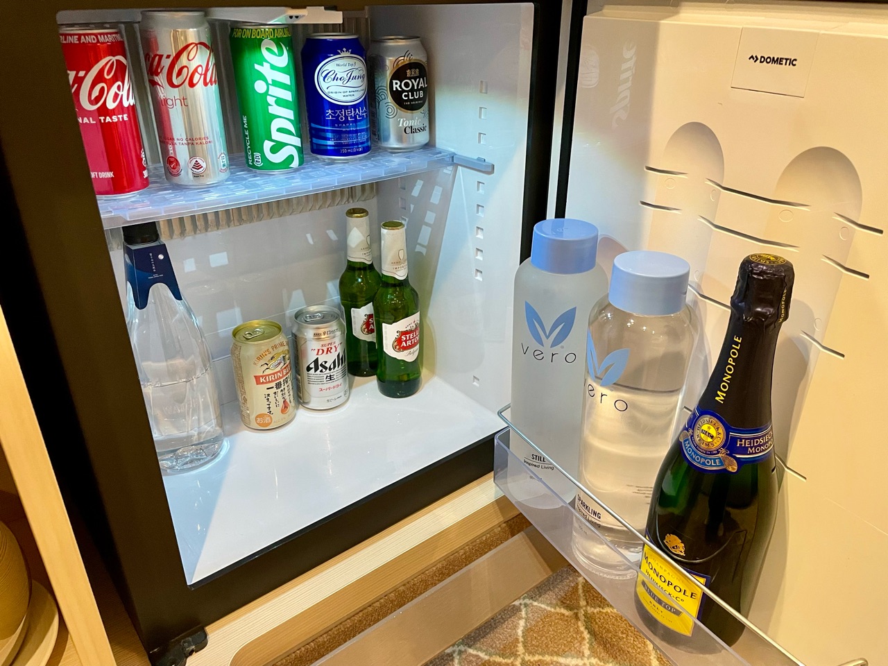 ミニバー無料はもちろんなのですが、自分の好みに合わせて、バトラーがミニバー内のドリンクをアレンジしてくださいます。私が飲んだものは、翌日には2本補充されていたり、赤ワインをグラスで頼んだら、翌日には、フルボトルがセットされたりと、新たに頼む必要ないほど完璧にセットされていくのでした。