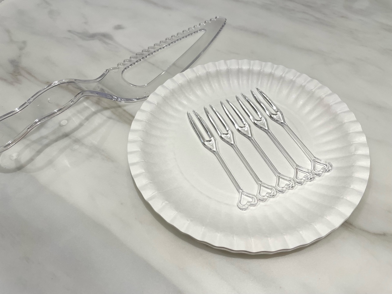 買ったケーキをレストランに持ち込むことも多いので、用意されているのだろうと思ったら、お家でもこのまま食べちゃったりすること多いの。洗うの面倒でしょーって。