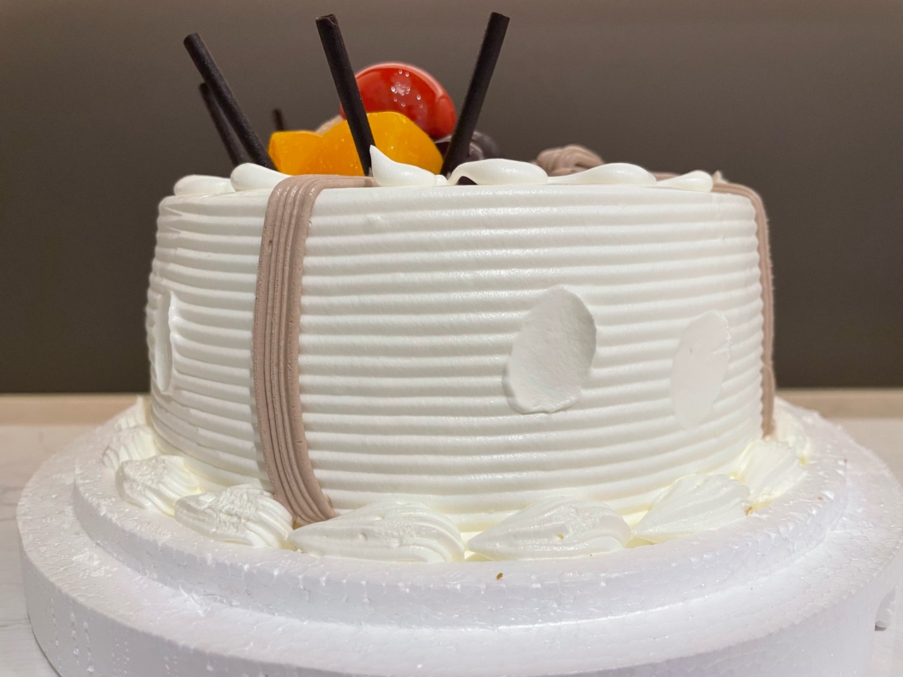 ケーキの側面をみると、擦ってしまったような跡があるのですが、店主曰く、これはデザインで、あえて付けている模様だそう。私がケーキを開ける前に、夫が「お店の人に、きちんと確認したからねー!」と言ってきて、確かに知らずにいたら、「こ、これは、、」と思ってしまいますよね😆