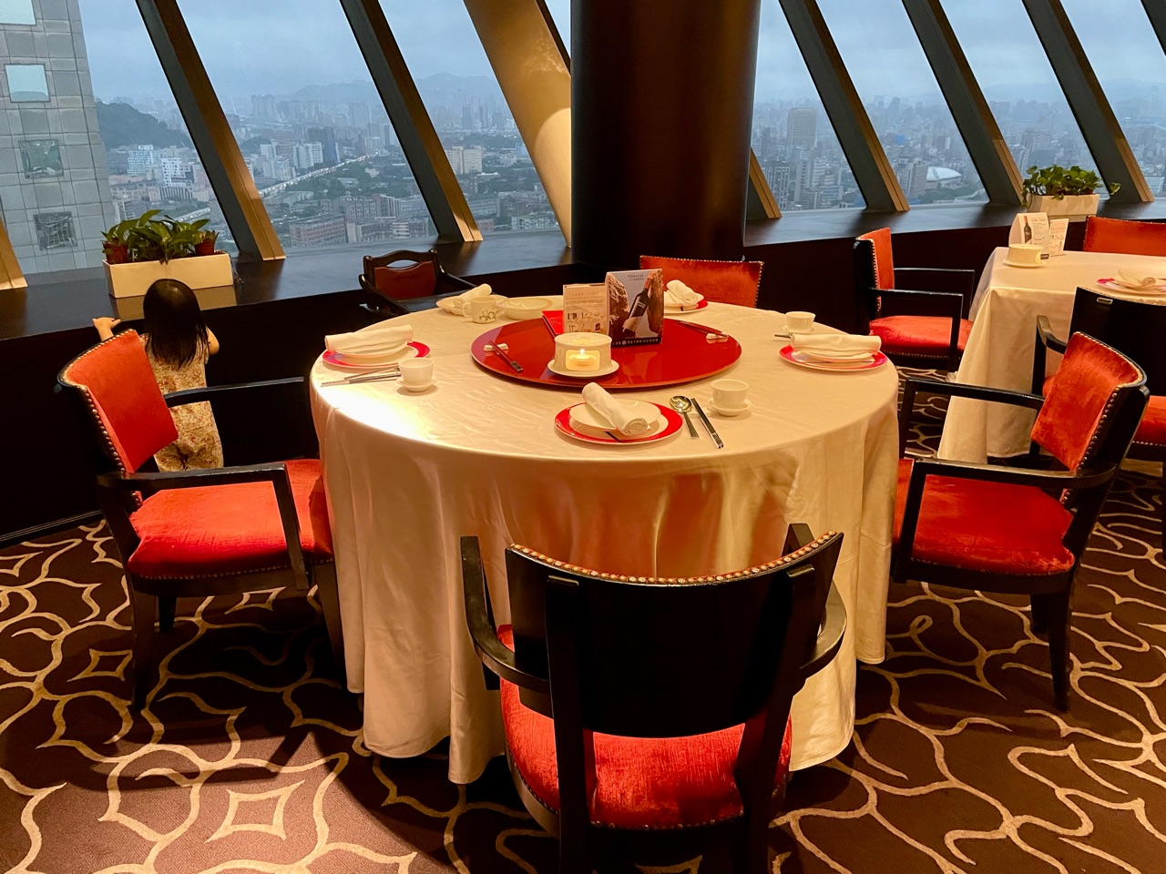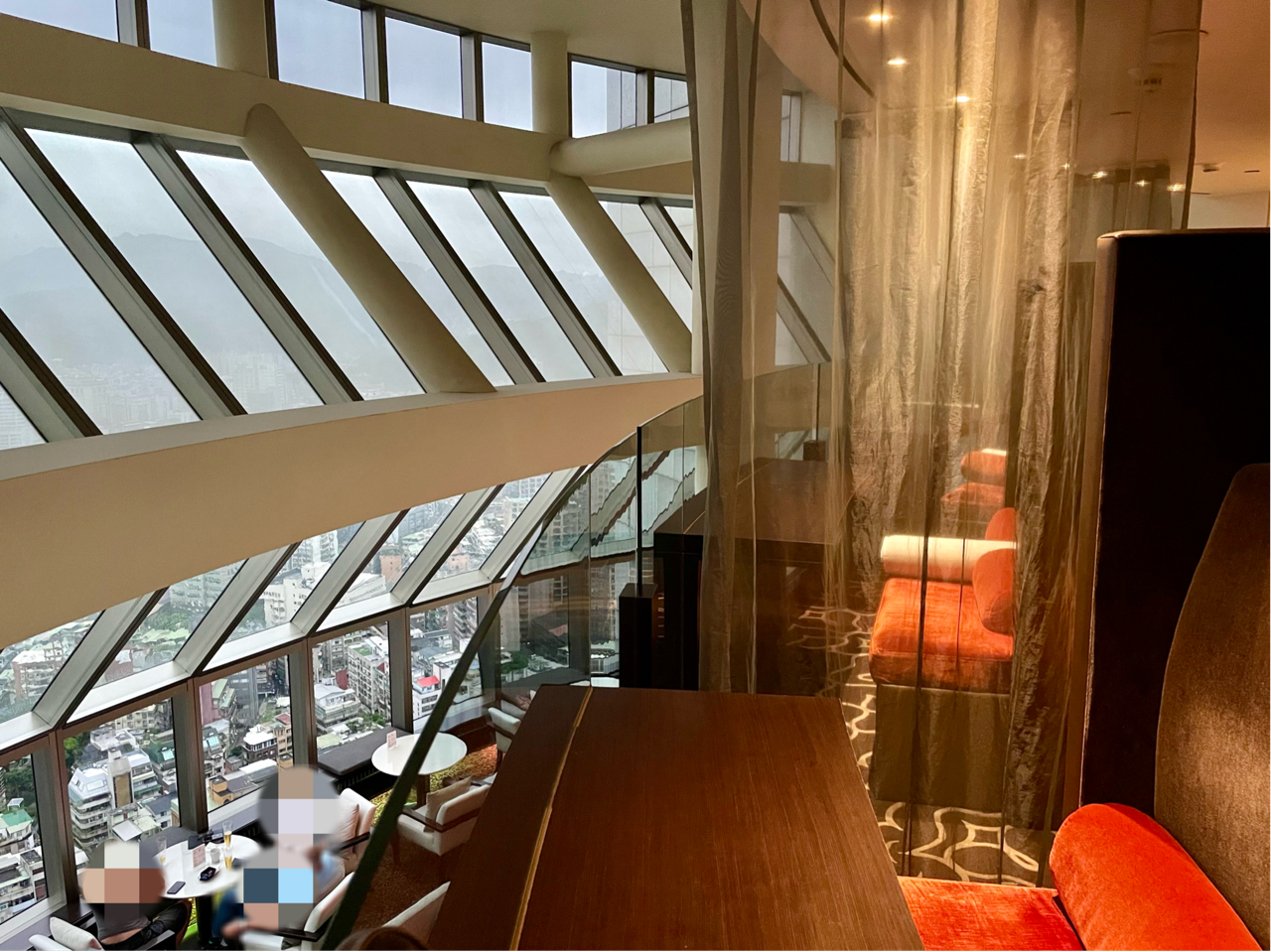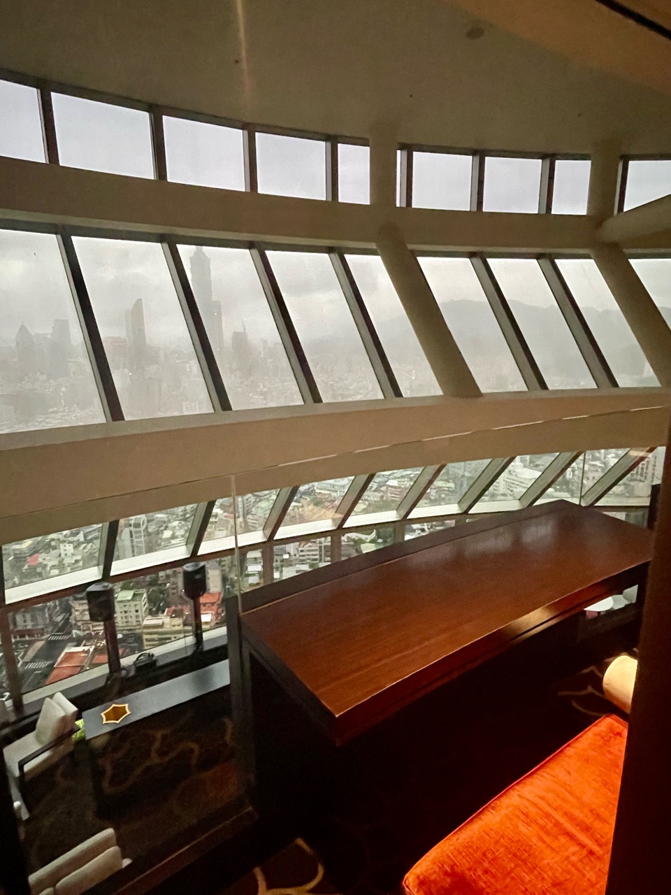 営業時間の少し前に着いたので、こちらで少し待っててねとのこと。このカップルシートは、下の階にある、マルコポーロラウンジを見下ろせるのですが、遠くには台北101も眺めることができて、素敵なんです。