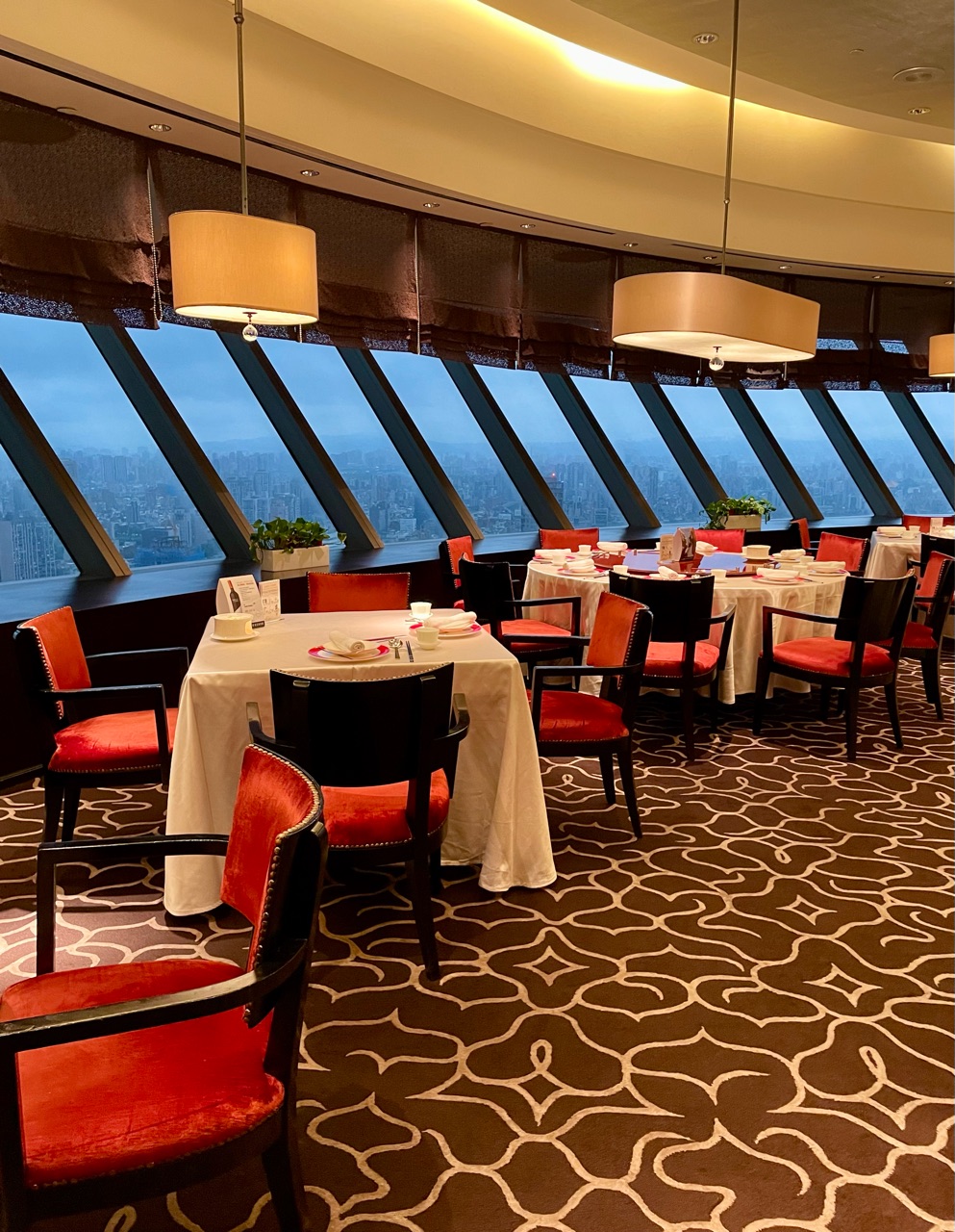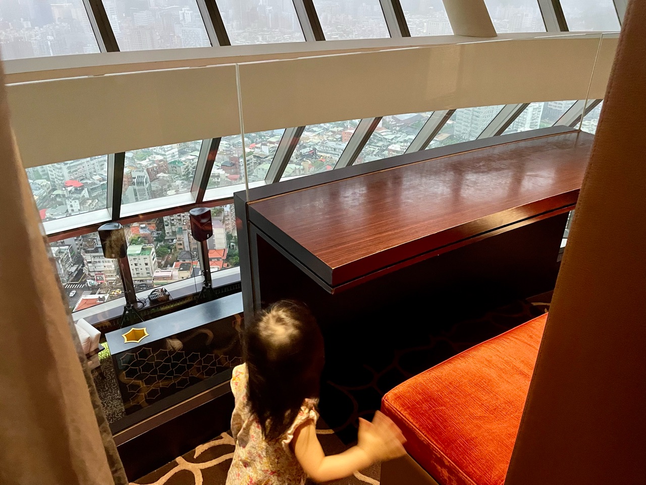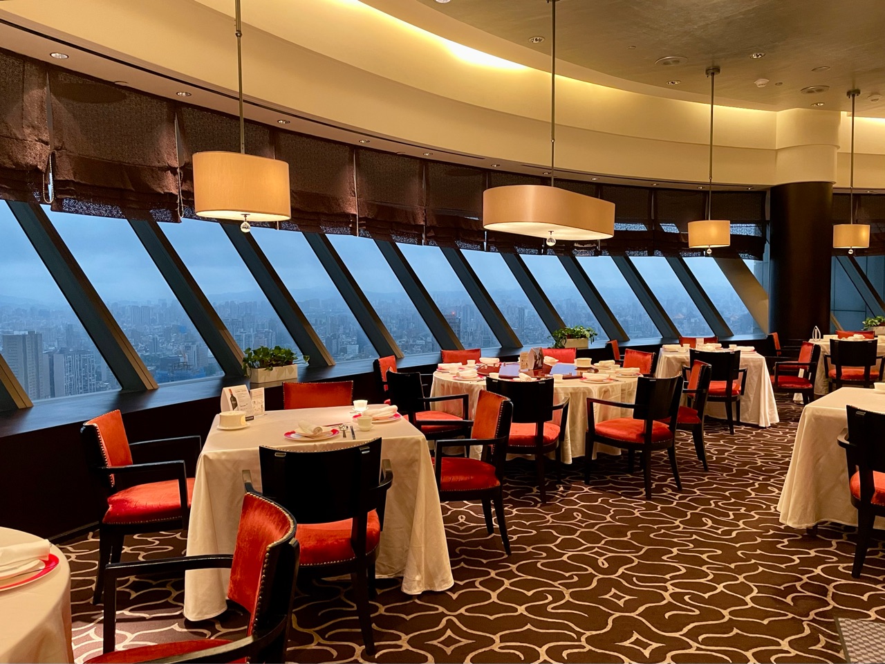 営業時間の少し前に着いたので、こちらで少し待っててねとのこと。このカップルシートは、下の階にある、マルコポーロラウンジを見下ろせるのですが、遠くには台北101も眺めることができて、素敵なんです。