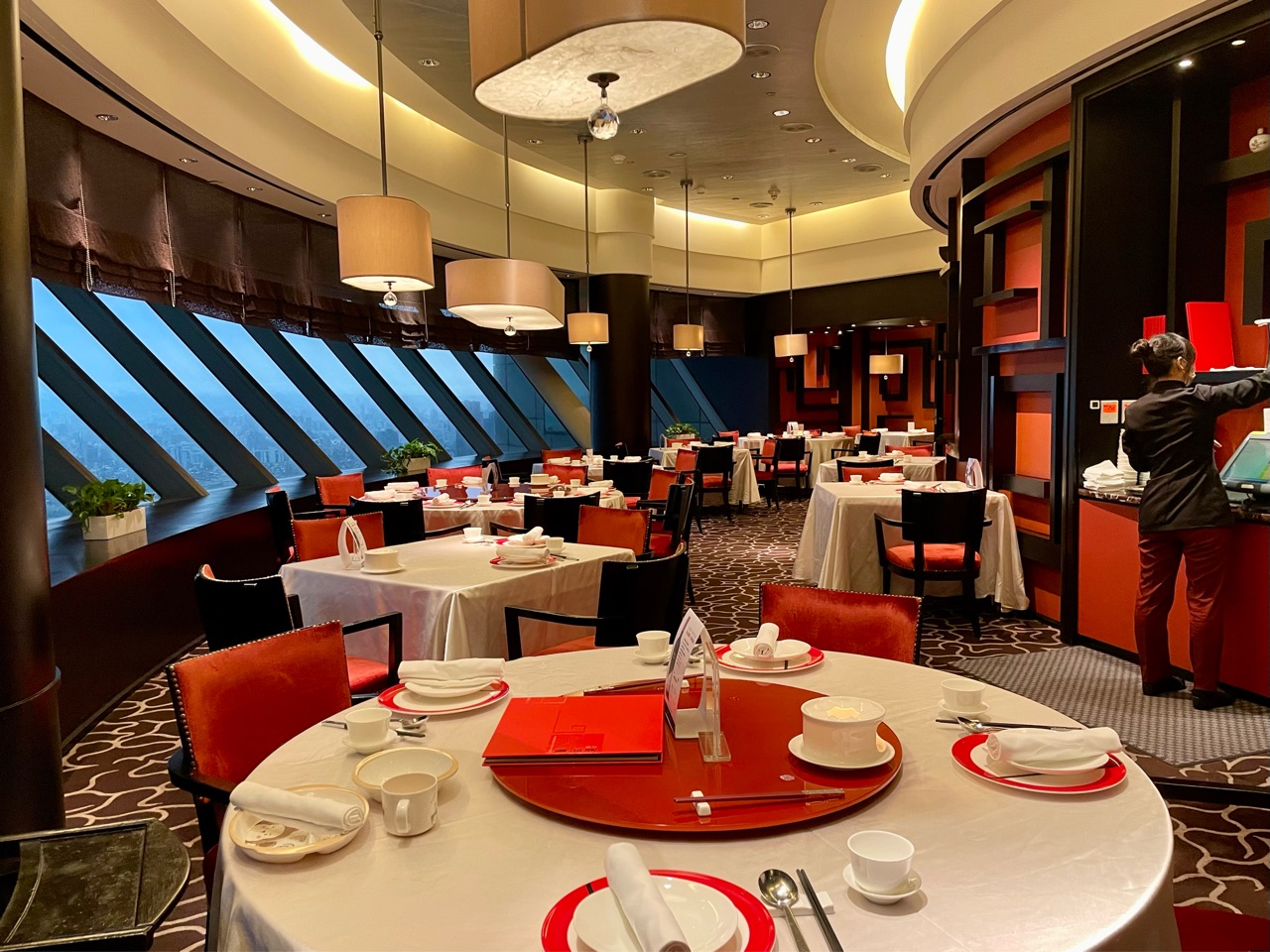 天井高くて、眺めは素敵なのですが、なんだか以前より照明が明るくなった?? いかにも、じゃじゃじゃ〜んの中華レストランになっていて、色気はゼロに等しいかも。
