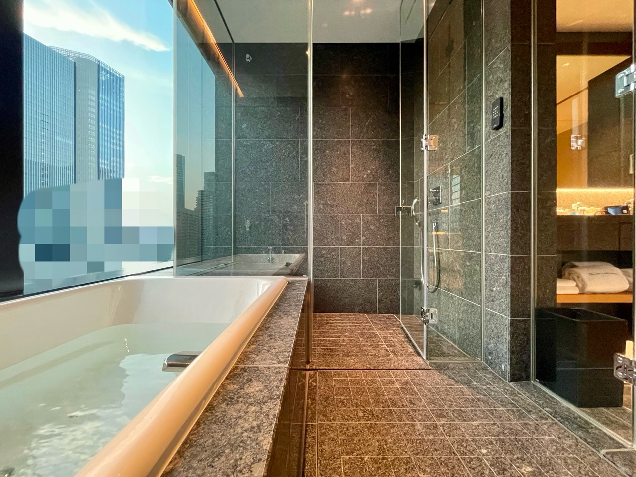 17階建なので、高層階ビューではないけれど、ビルに囲まれた、いかにも都会の中心的な景色です。