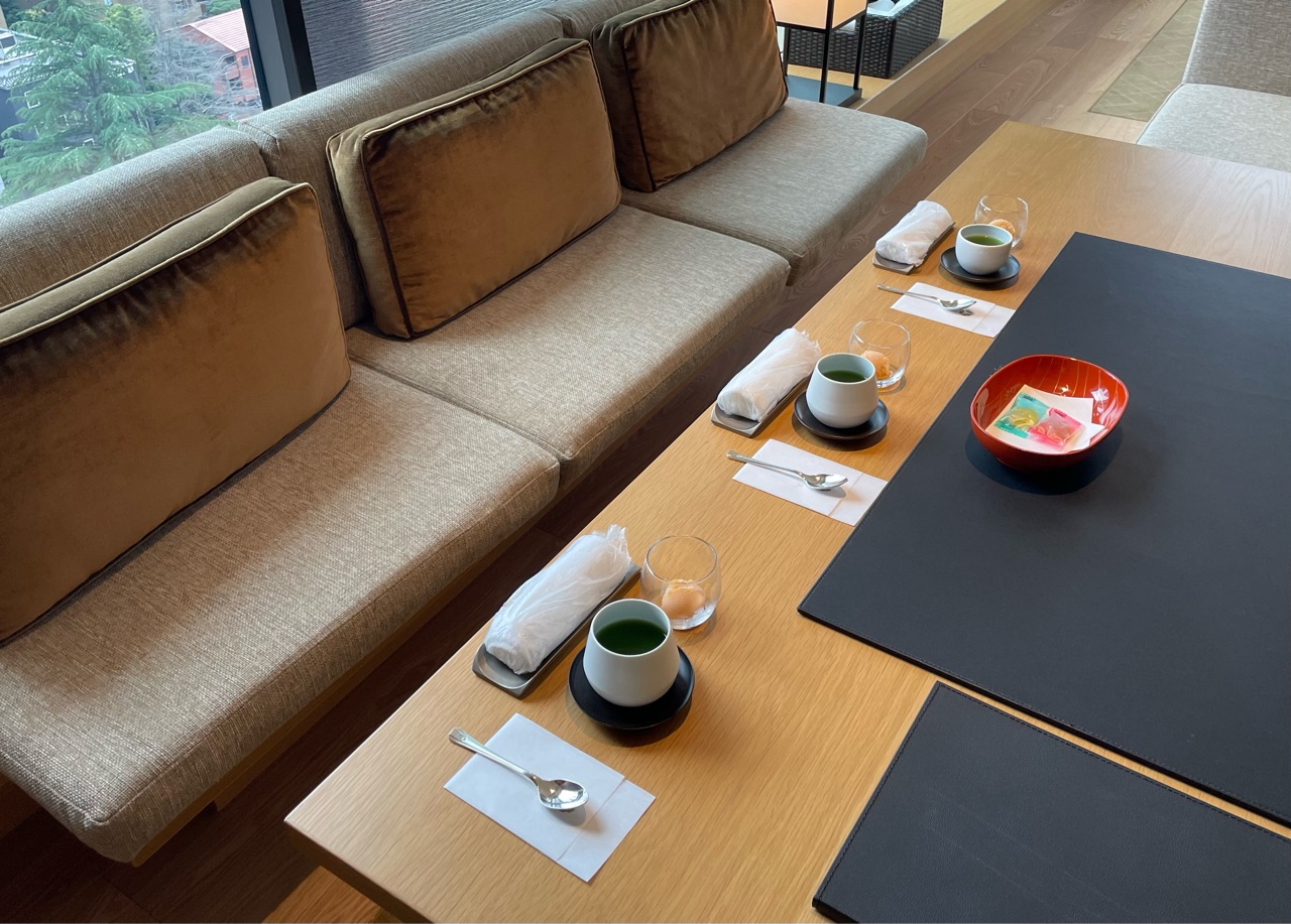 お部屋に入ると、ウエルカムドリンクが運ばれてきます。旅館のようなおもてなしです。