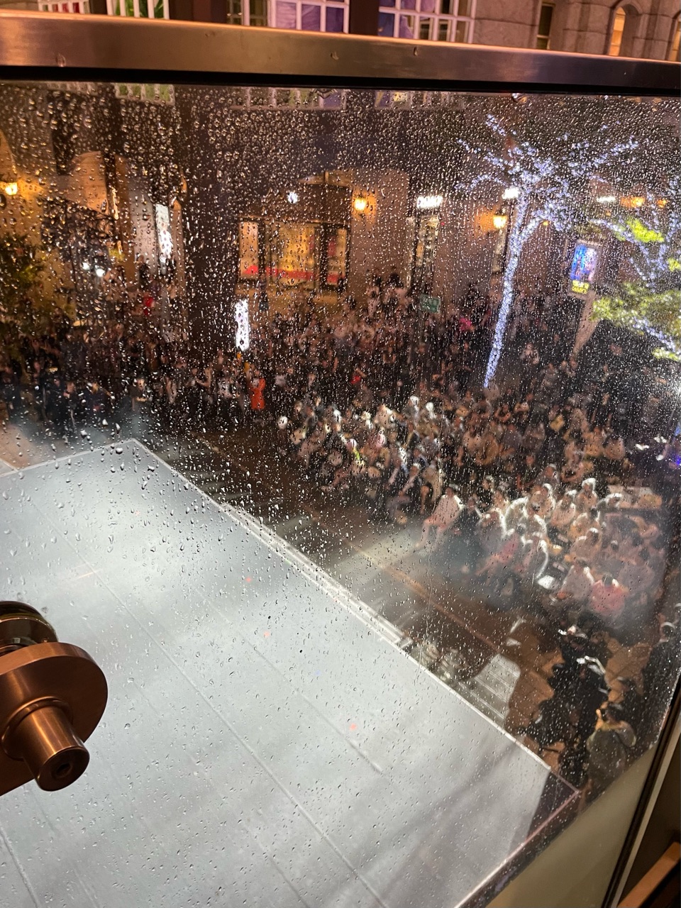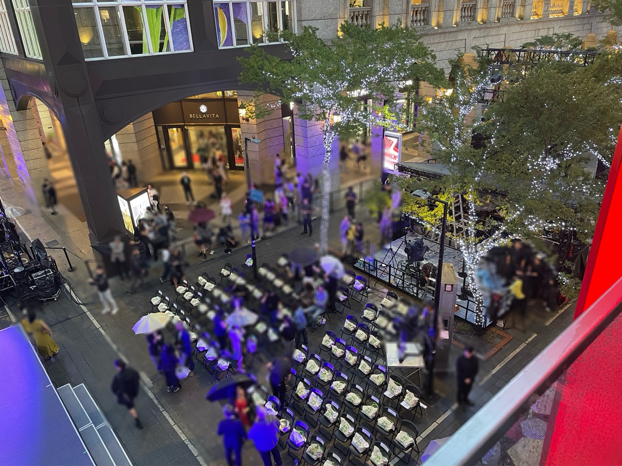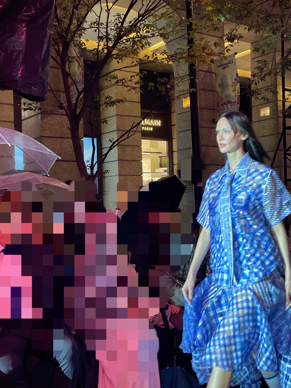 少し早めに帰りましたが、上から見るとこんな感じで、雨の中でも大盛況なファッションショーでした。