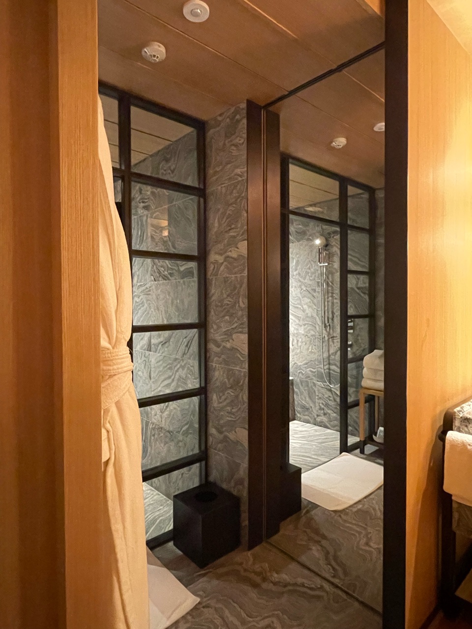 バスハウスまでは、お部屋の浴衣&スリッパ(お揃いカワイイ♡)でいっても大丈夫とのことでした。これはすごい、旅館みたい^^
