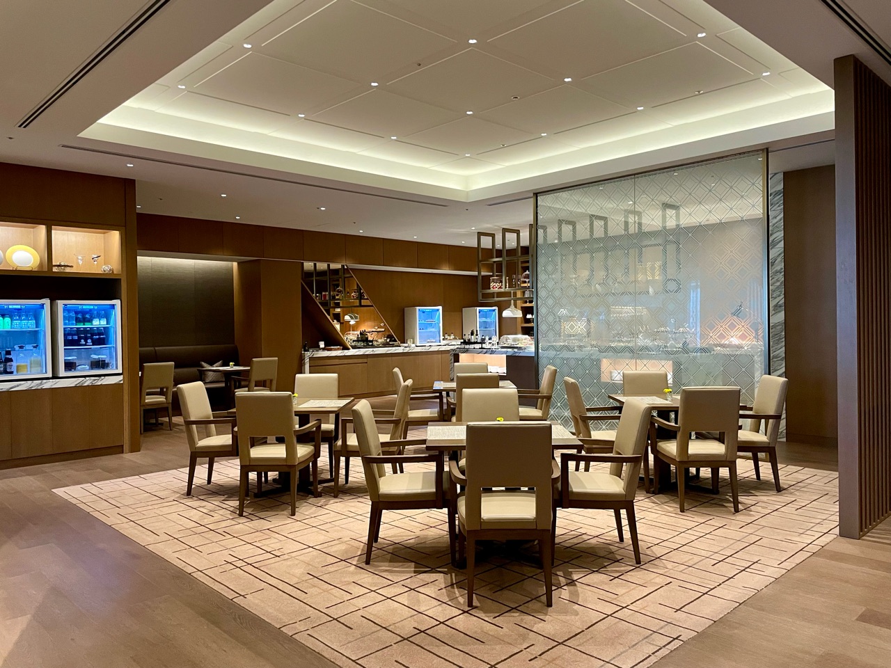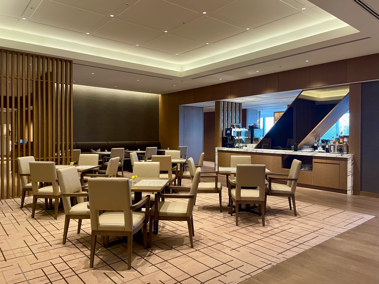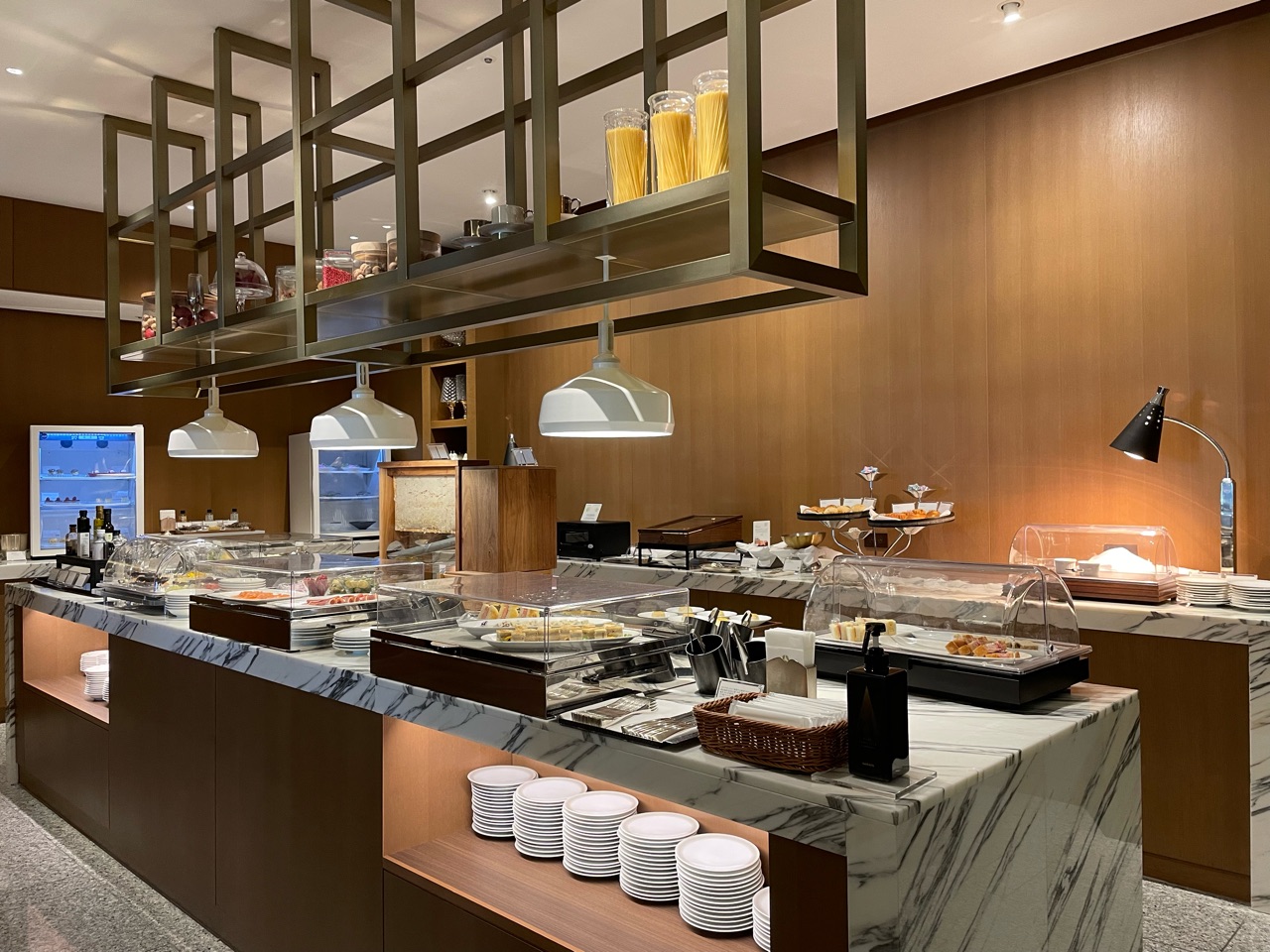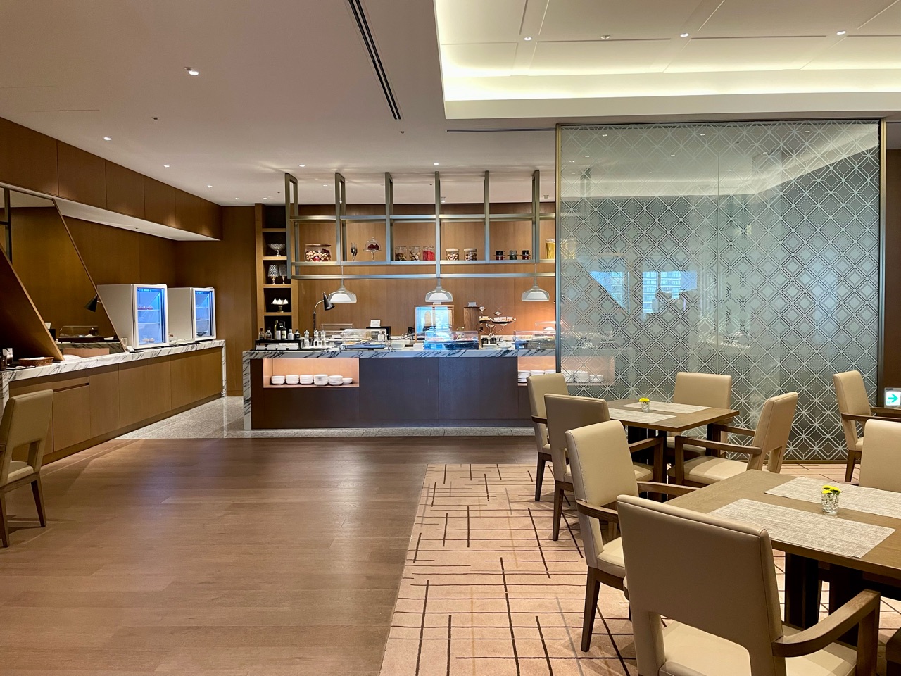 以前の滞在時は、さっとドリンクだけいただいただけでしたので、今回は張り切っていろいろ食べてみました♬ ラウンジ内は、いくつかのスペースに分かれていて、お食事しやすいお席もあれば、作業しやすいカウンター席もあったり、