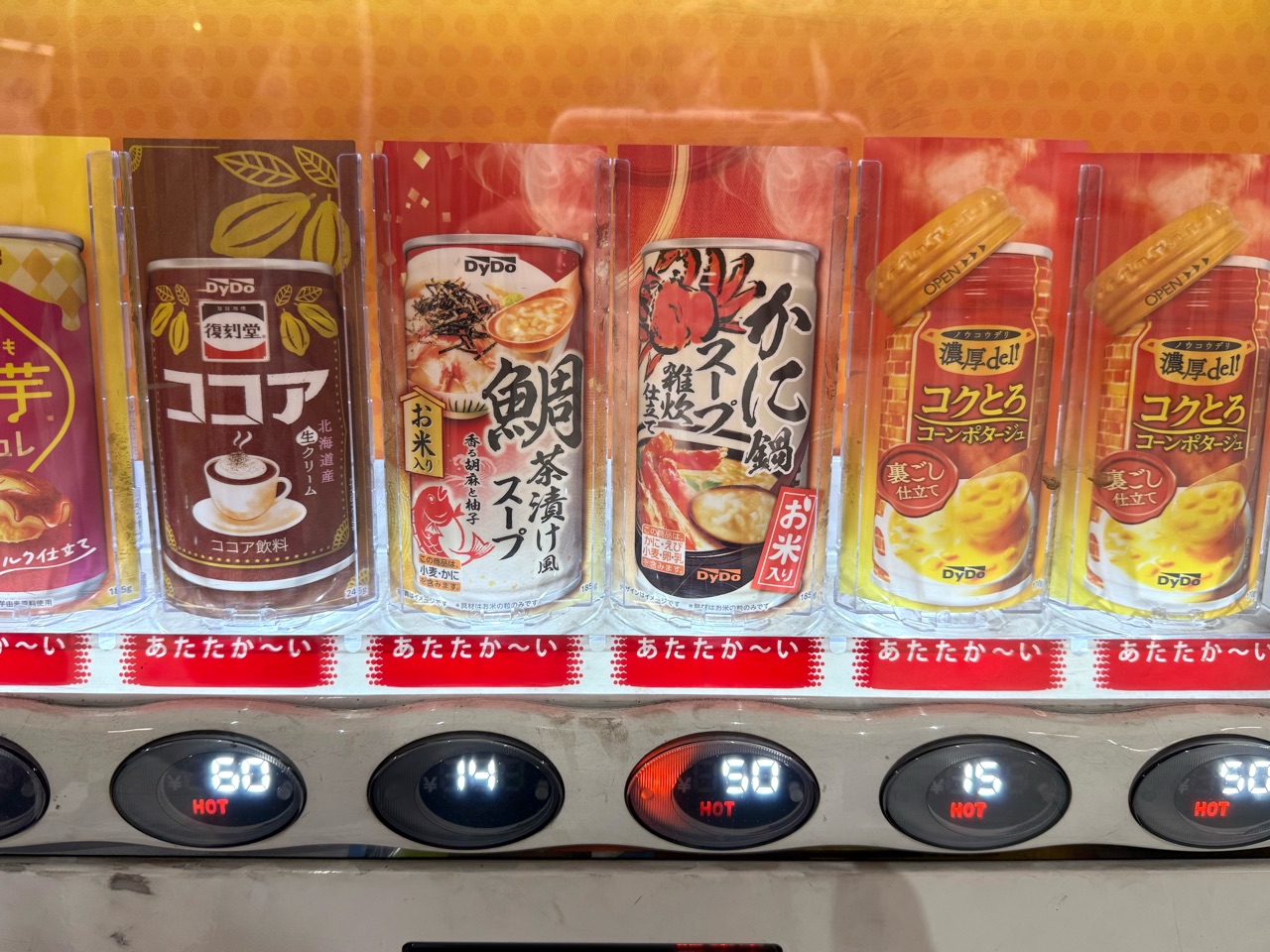 鯛茶漬けスープに蟹鍋スープが自動販売機で買えてしまう日本。すごすぎます👏