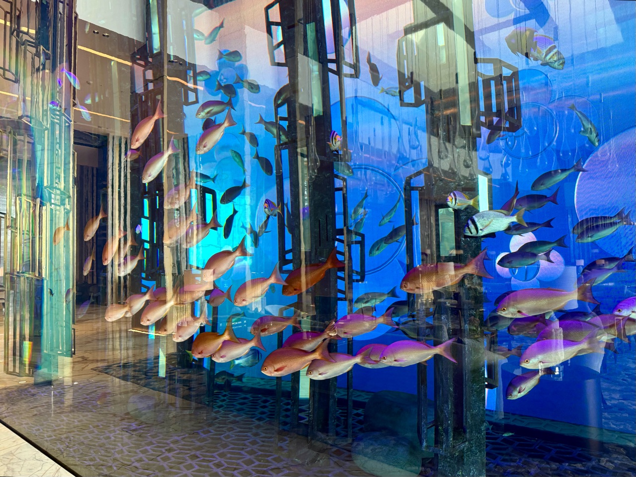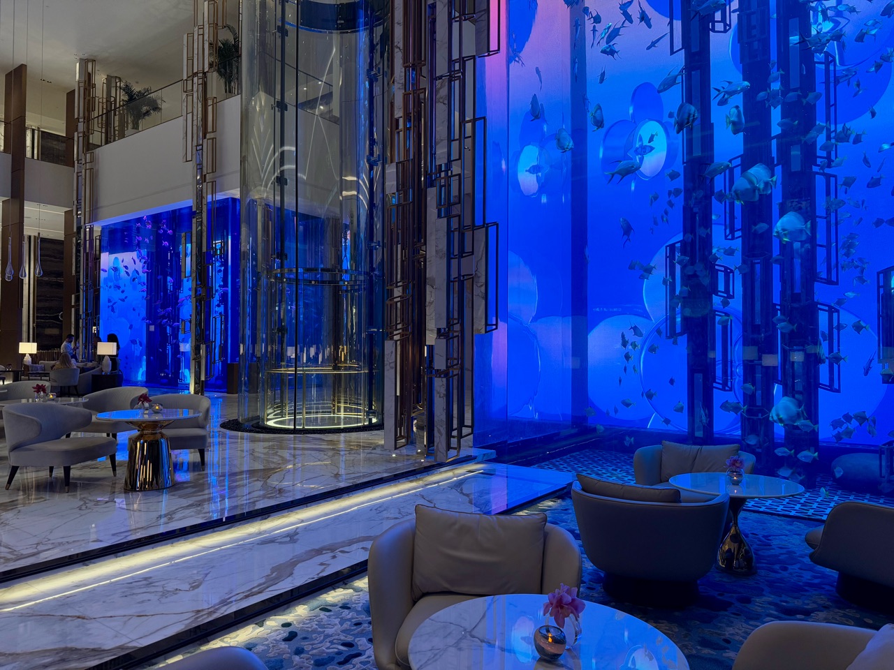ドバイのホテルといえば、館内に水槽があるイメージですが、ここにもありました。