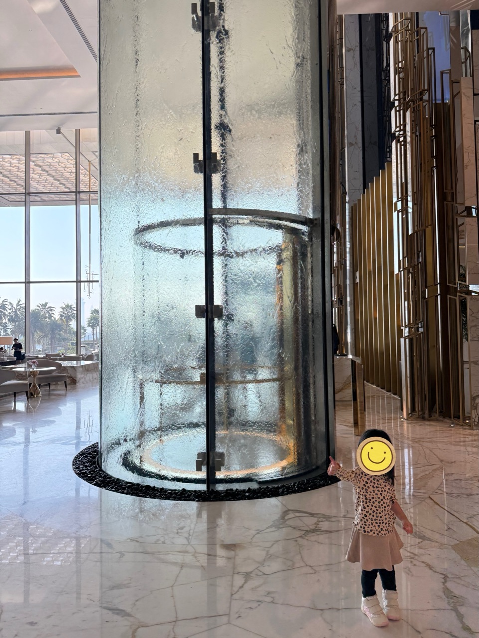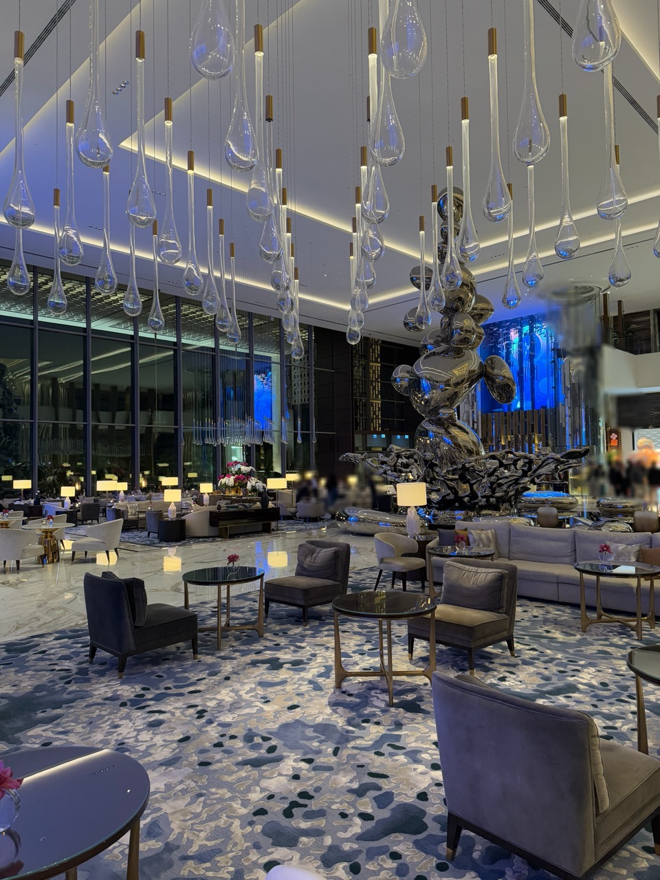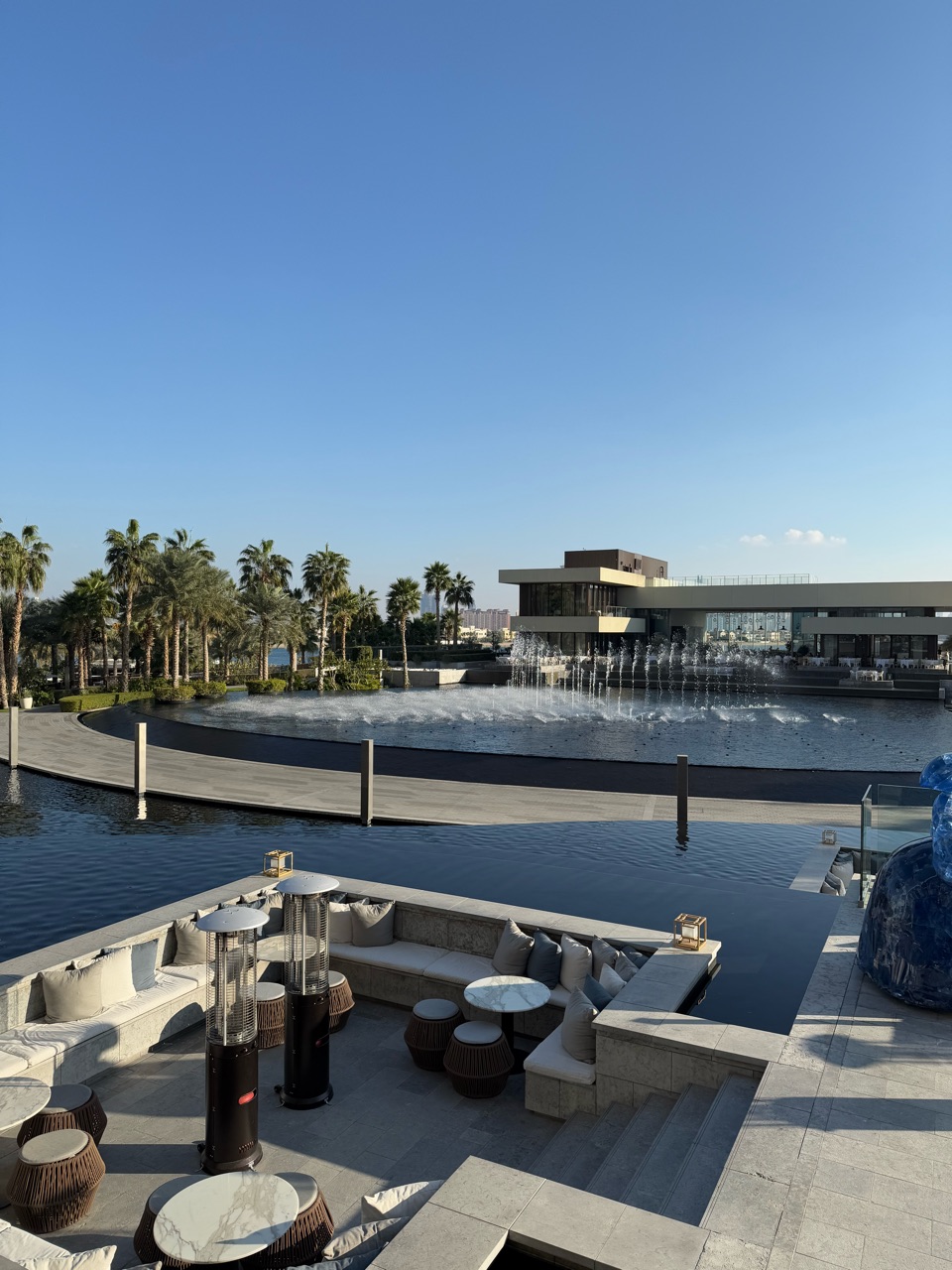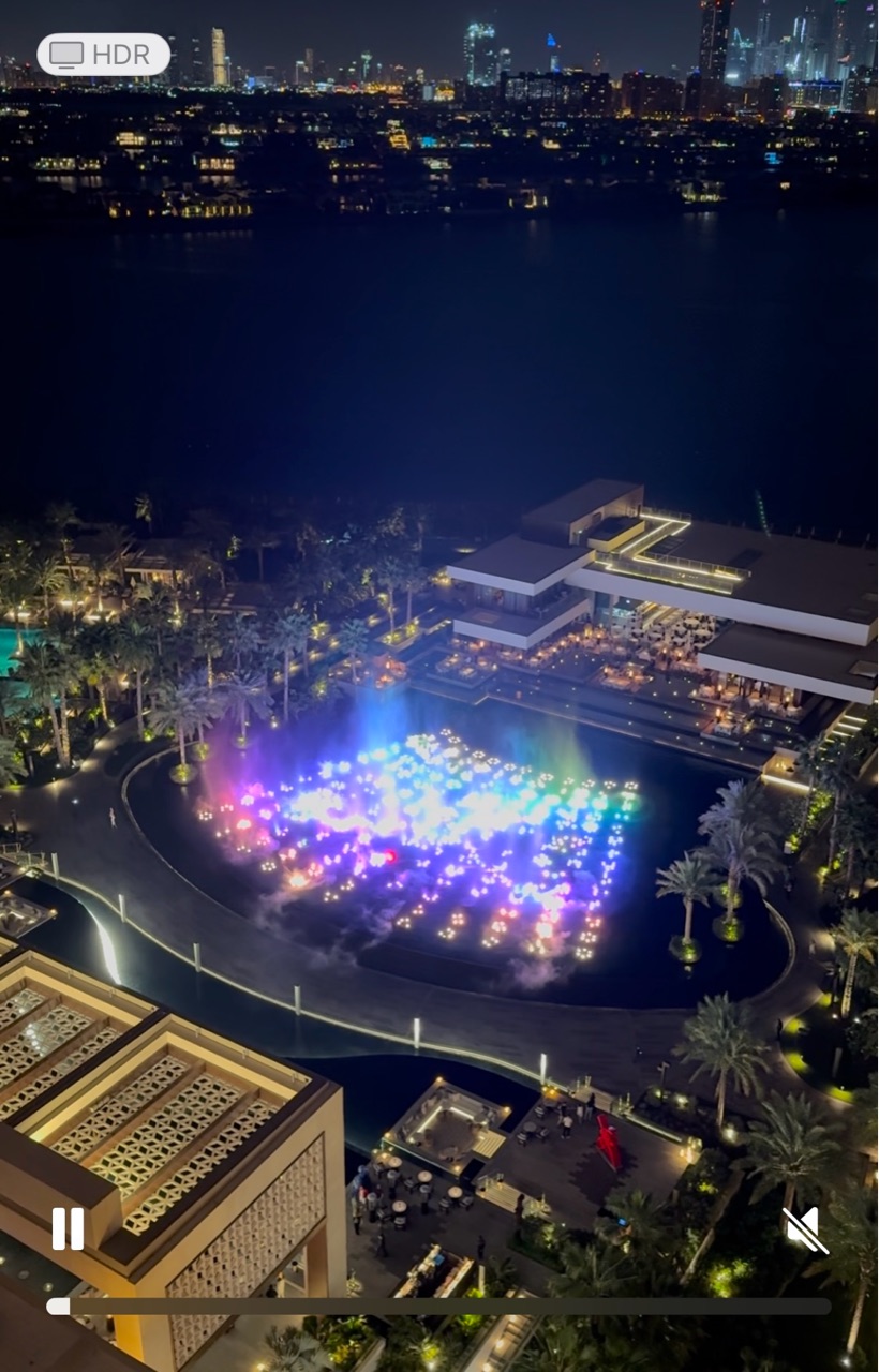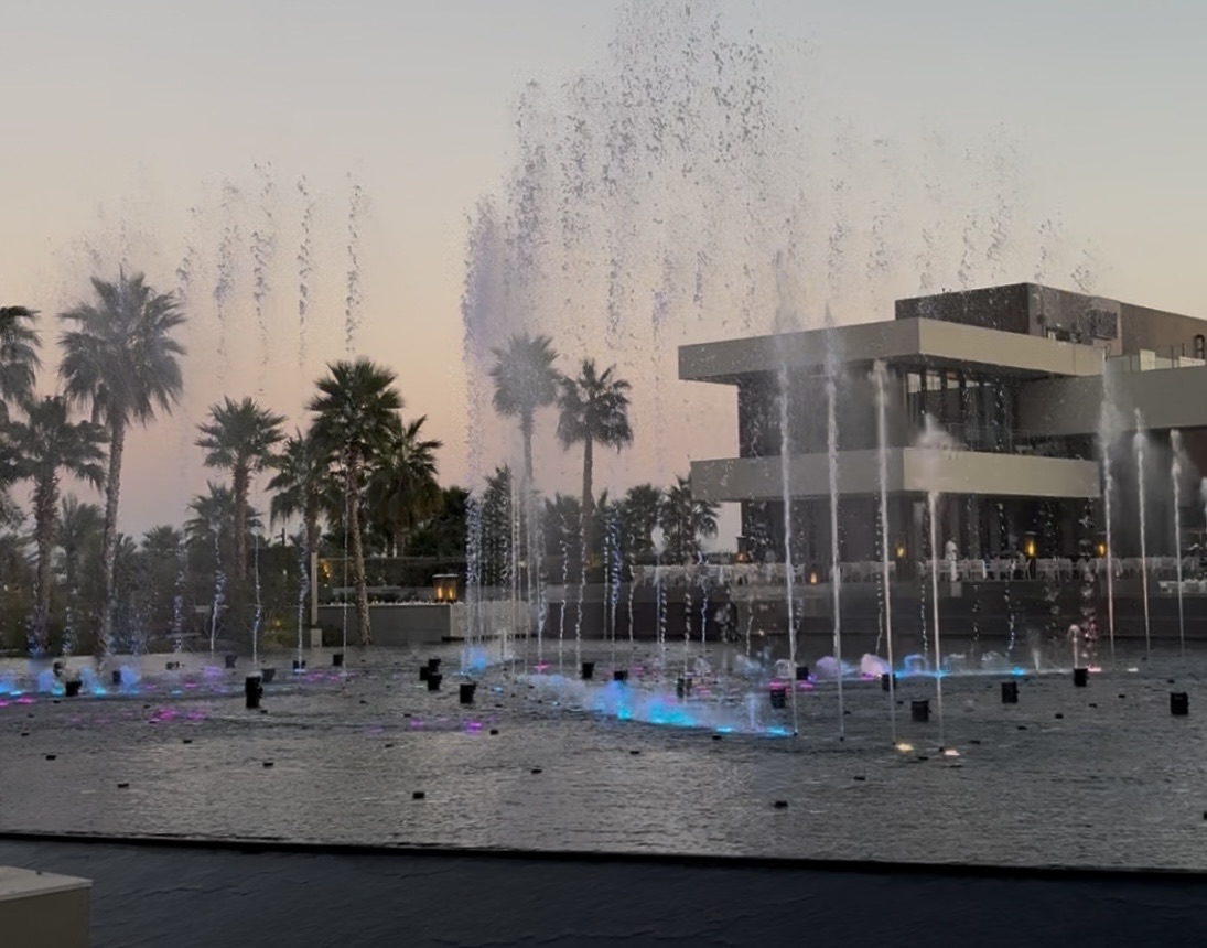 なかなかと書いたのは、ドバイの噴水ってとにかく圧巻のスケール!というイメージが強くて。それを期待していると、ここはそんなことはないかも?と思うのですが、でもよく考えたら、いちホテルにこんなに大きな噴水があるのはやはりすごいことですよね。