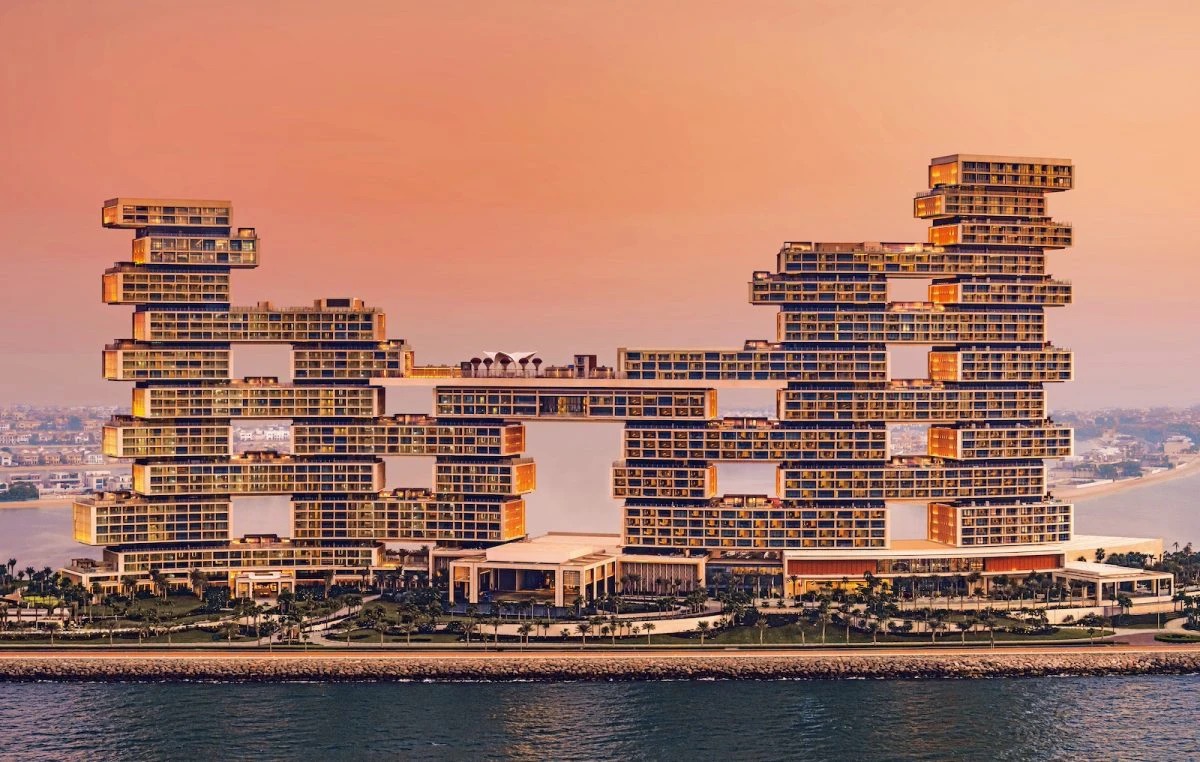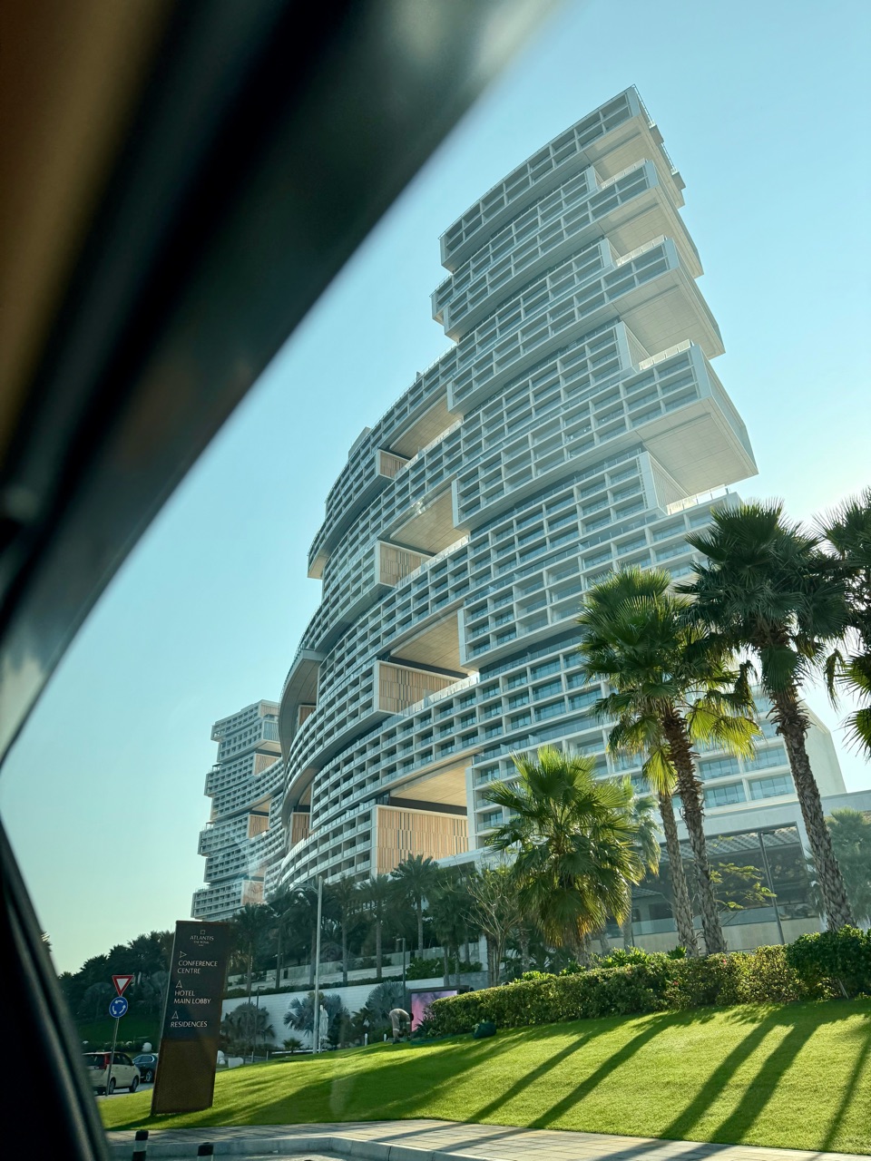 滞在先は、アトランティス ザ ロイヤル。外観がユニーク。早速ドバイにきた感あり😆