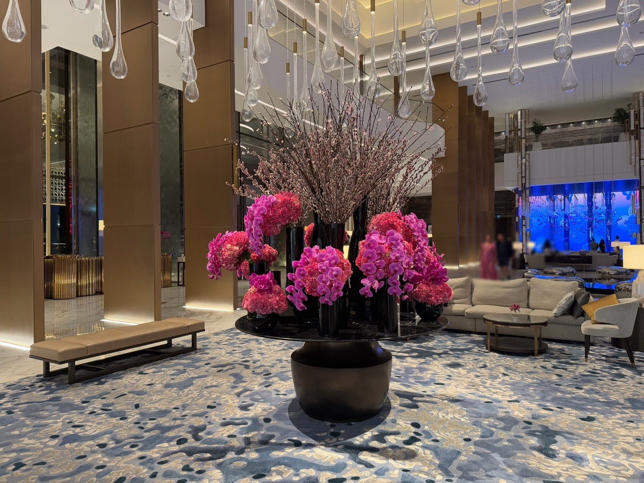 あと、エントランスには、水の流れと一緒に炎が燃え上がる演出も。華麗なドレスを纏った美女グループがここを通られる瞬間を目撃しましたが、まるで映画のワンシーンのように素敵でした♡