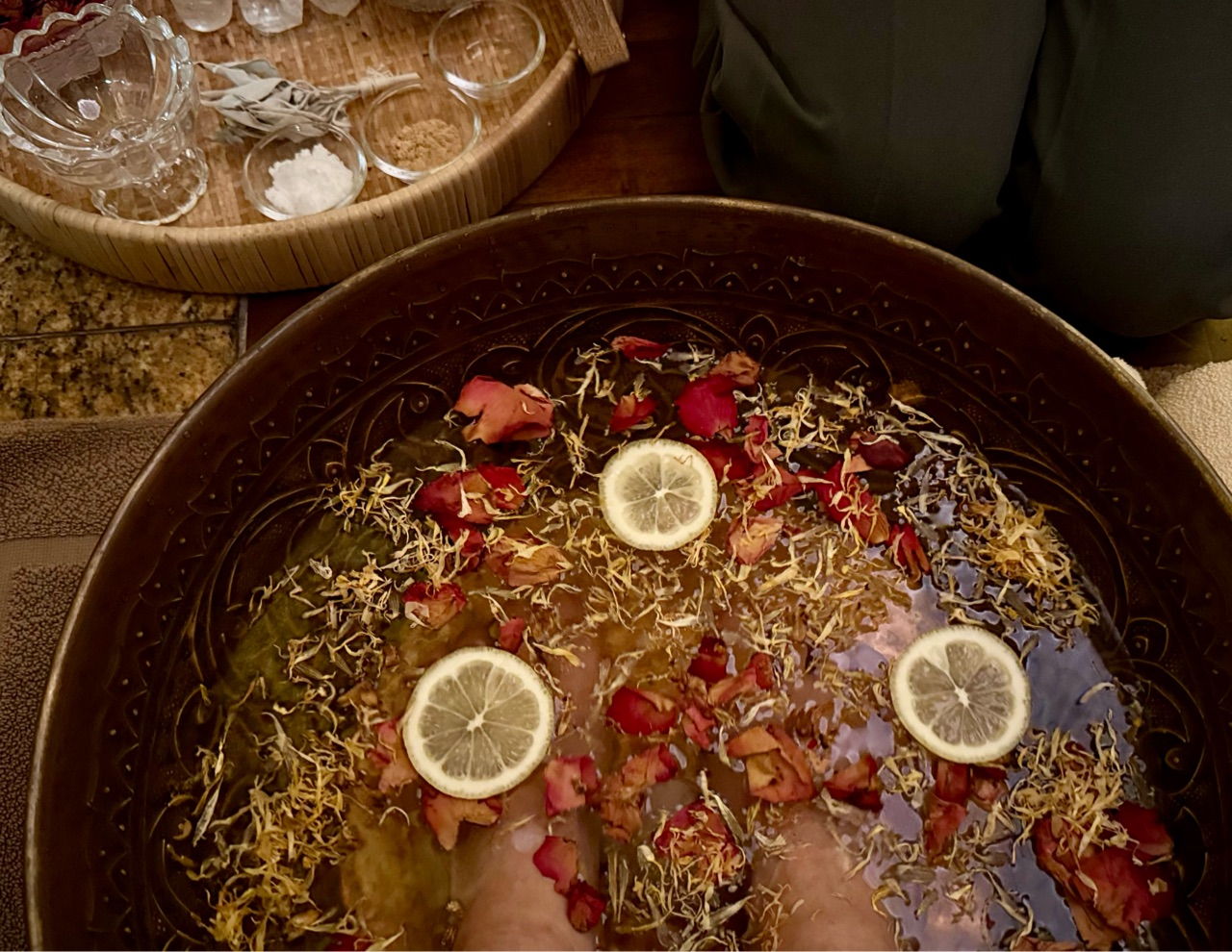 これらすべてはフットバスに使用されるためのもの、というのだからすごいですよね。 足を洗うだけのために、こんなにも贅沢な素材を使うだなんて。お姫様になった気分です⭐︎